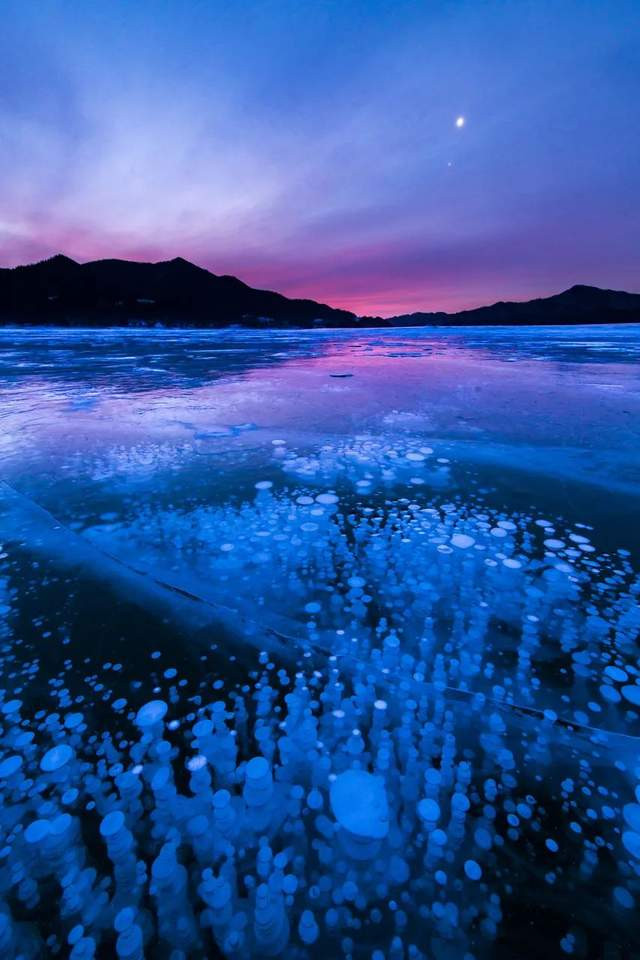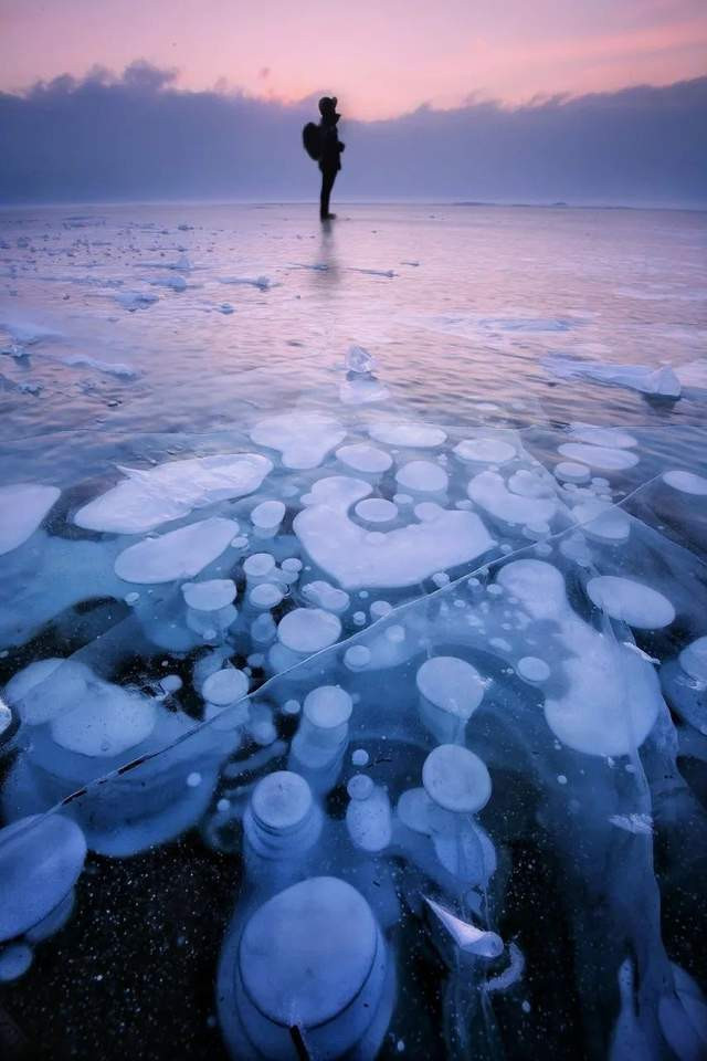 巨大的冰气泡像是深海在呼吸,站在冰面上,感觉即震撼又绝美。
