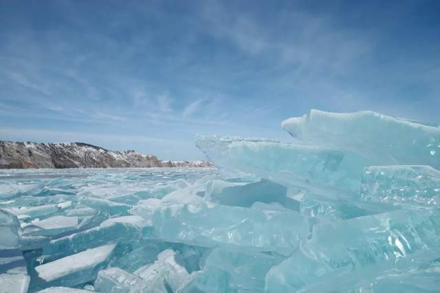 蓝冰又叫冰川冰,它是一种蓝色的冰,它的蓝就像是天空般纯净,不染尘埃。
