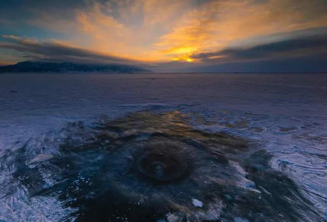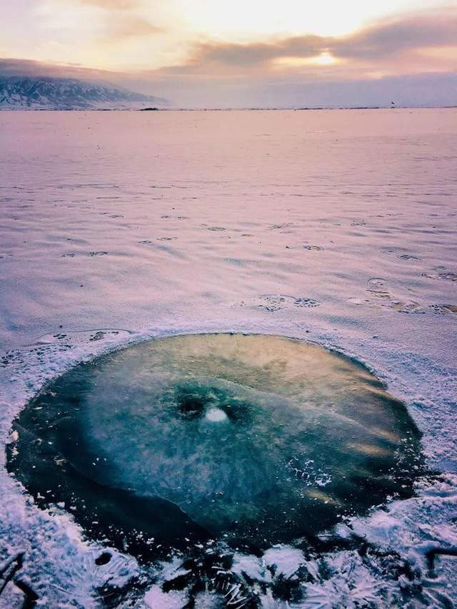镶嵌在冰面下的冰眼,就像是黑暗深处派来窥探人间的眼。