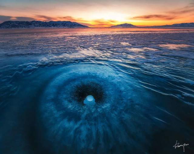 如果说冰气泡是梦幻的、冰裂是震撼的,那冰眼绝对是一种诡异美的存在。