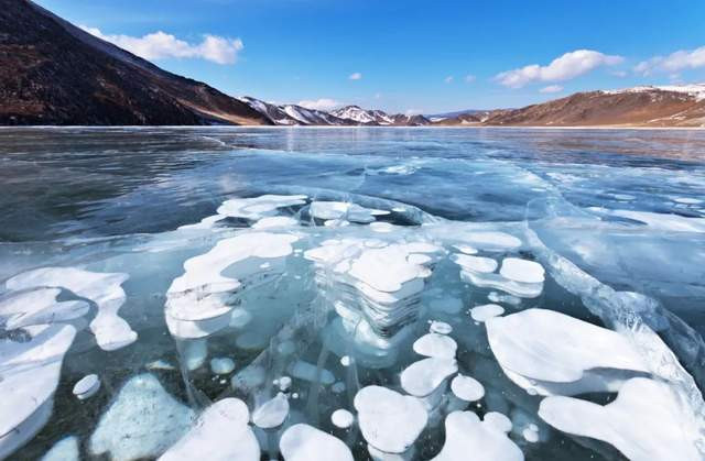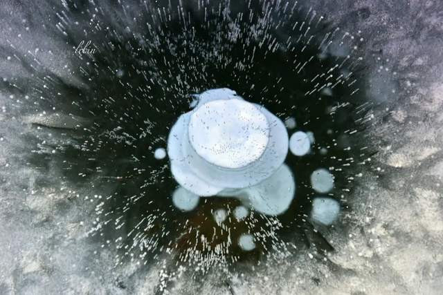 一个个冰气泡在巨大的冰面中,仿佛要破冰而出般,震撼又生动。