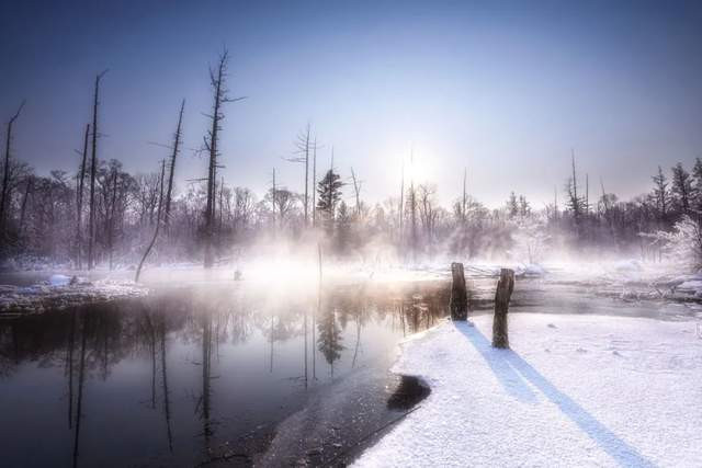弥漫着雾气的银装素裹的世界,绝对会让你眼前一亮。