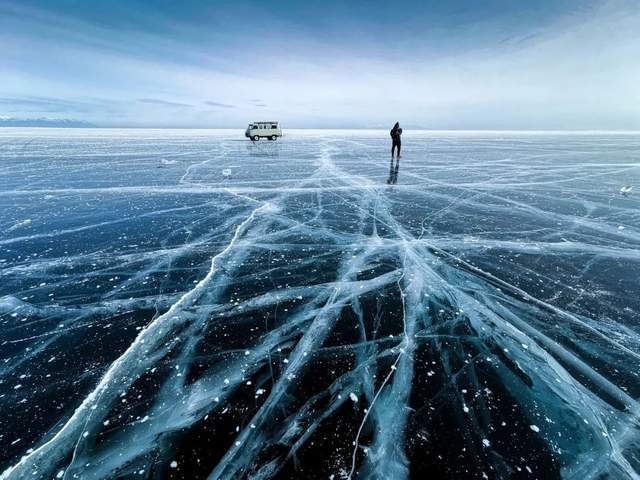 踩在带着冰裂的冰面上,极长、极深的裂痕,让人震撼无比又胆战心惊。