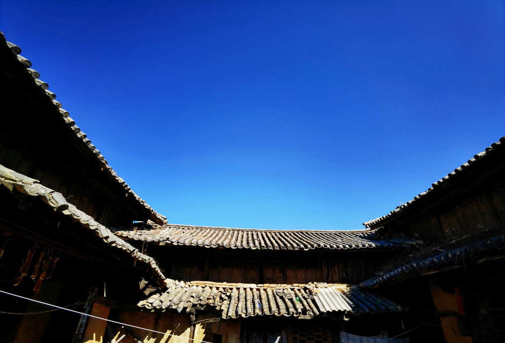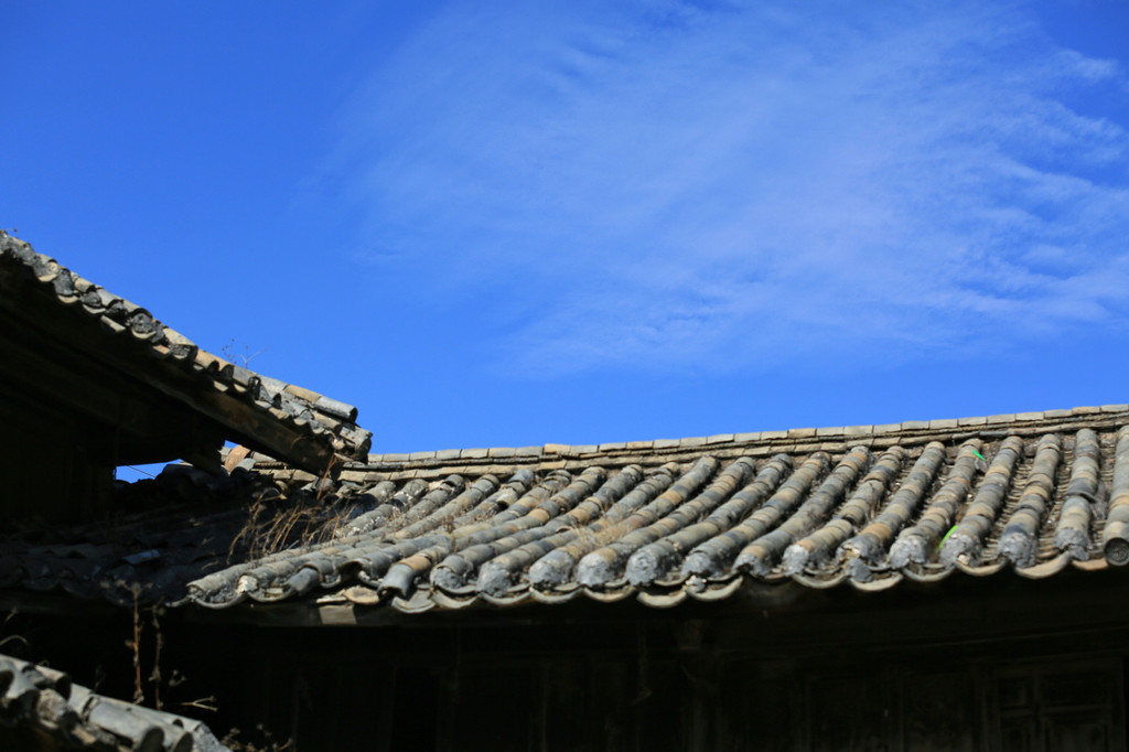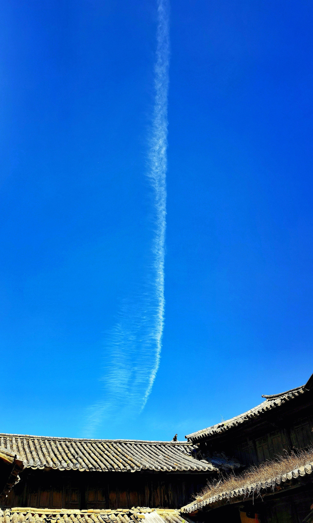 1、在大嫂她们制作年饭的过程中,我在老院子内到处走走、参观一番。四合院的天空,蓝蓝的且一尘不染,午间巧遇一条白云直插苍穹,预示着牛年顺利、牛气冲天的好运。大哥住的地方是我们小时候的老院子,四合院的另外三边是家族中其他人家的,现在都搬出去住了,留下百年的老宅子,留下的是我童年美好的回忆。