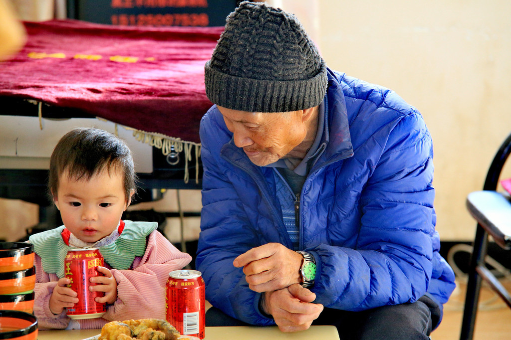 2、年饭制作过程中,老父亲与重孙女一起玩耍,老母亲则坐在院子的一边看着我们就好。大嫂是个多能手,做菜更是她的强项,还不让我们帮忙、打下手。