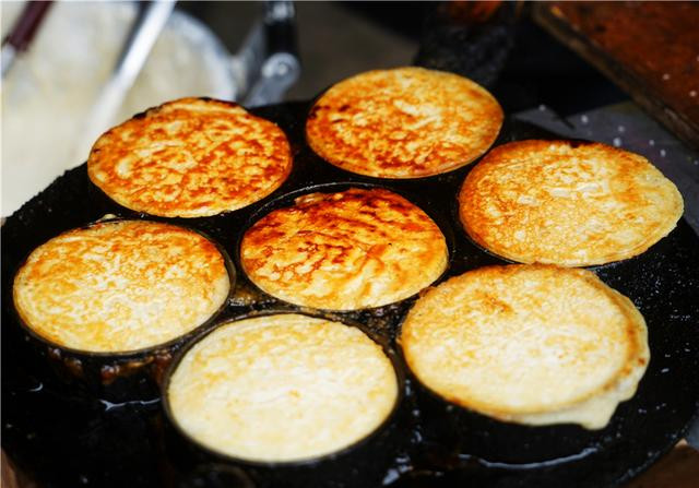 现做的海棠糕带着热乎乎的气息,糖稀拉出来的丝犹如女生的长发,看着就觉得十分好吃。