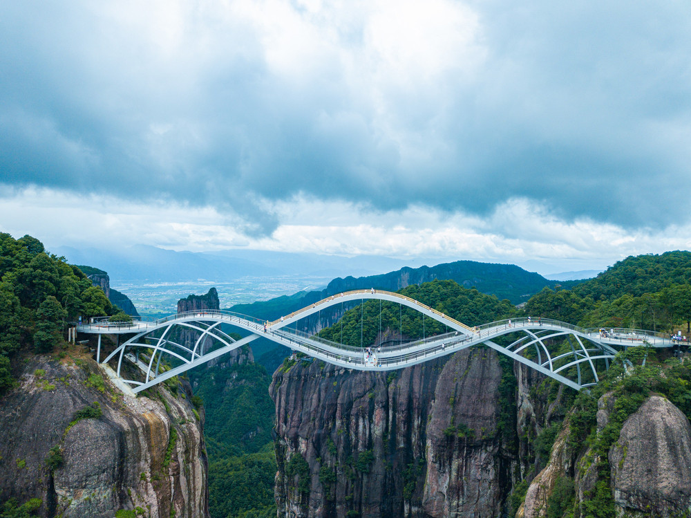 蜿蜒盘旋的卧龙桥,刚柔并济的如意桥,不仅寓意非常美好-吉祥如意。与神仙居的自然风光完美地融为一体,宛如一柄空中的玉如意,又似仙女的披帛。