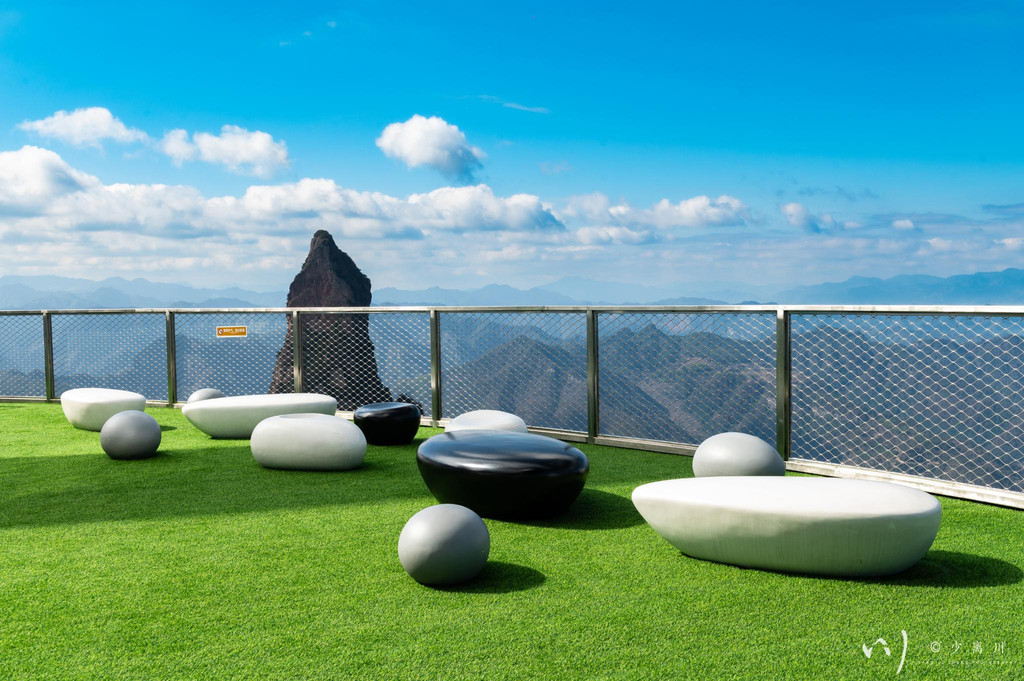 顶上有许多打卡点,也有休息区域。四周群山环绕,可以在这里多游玩一段时间。