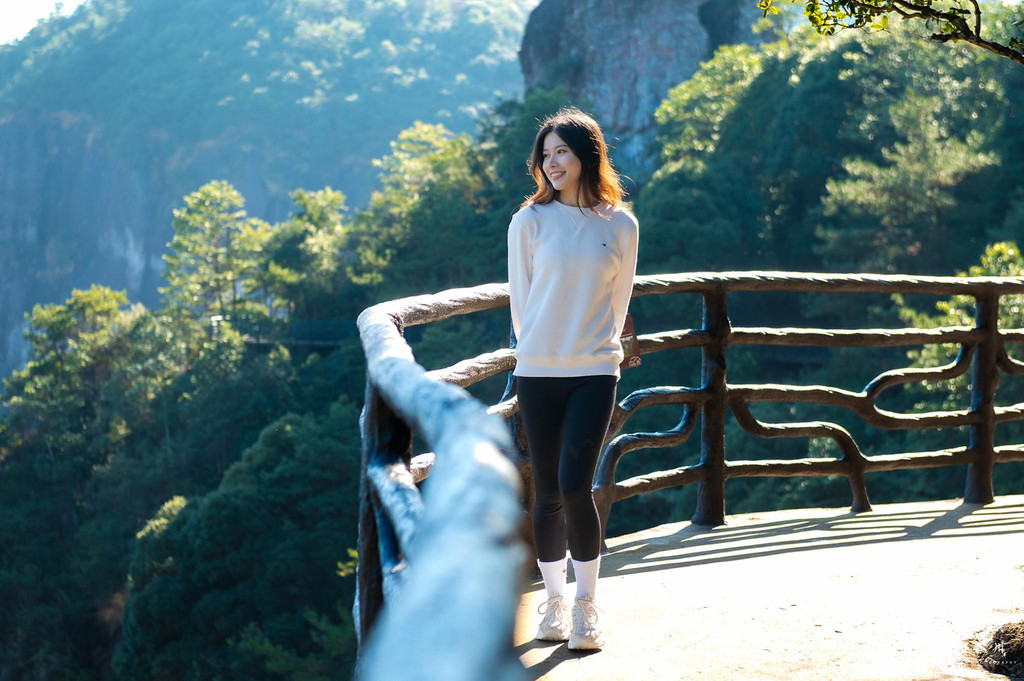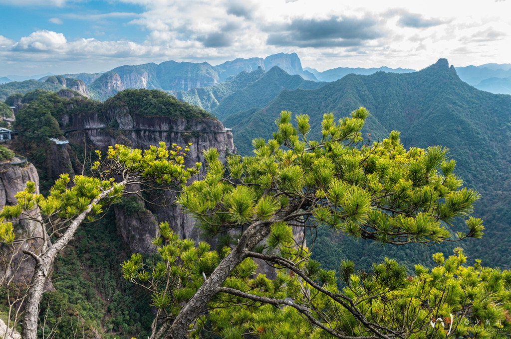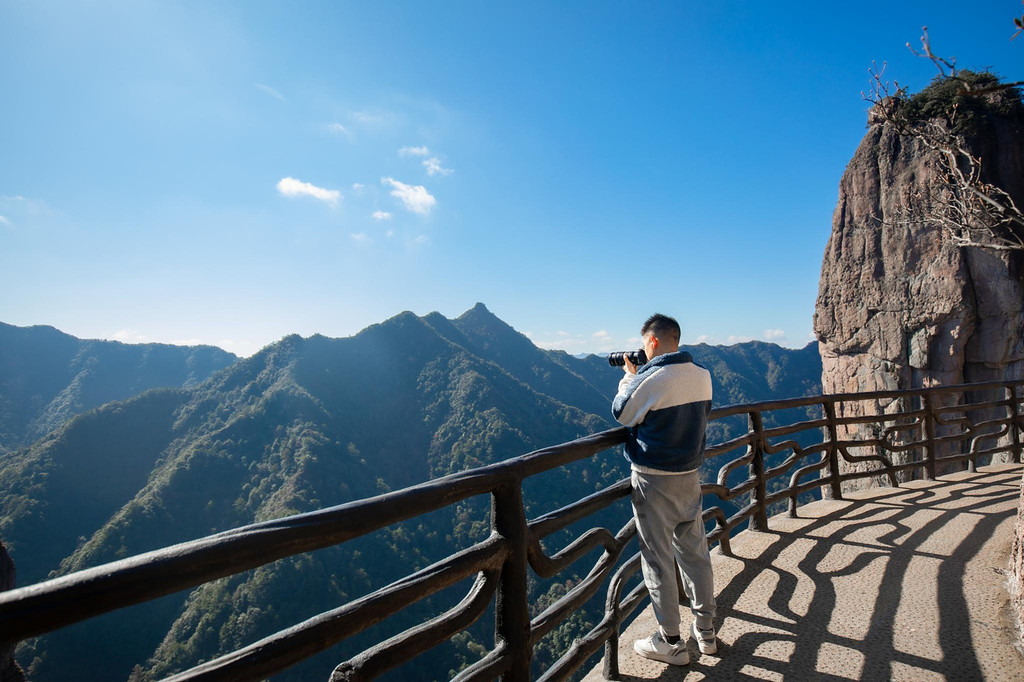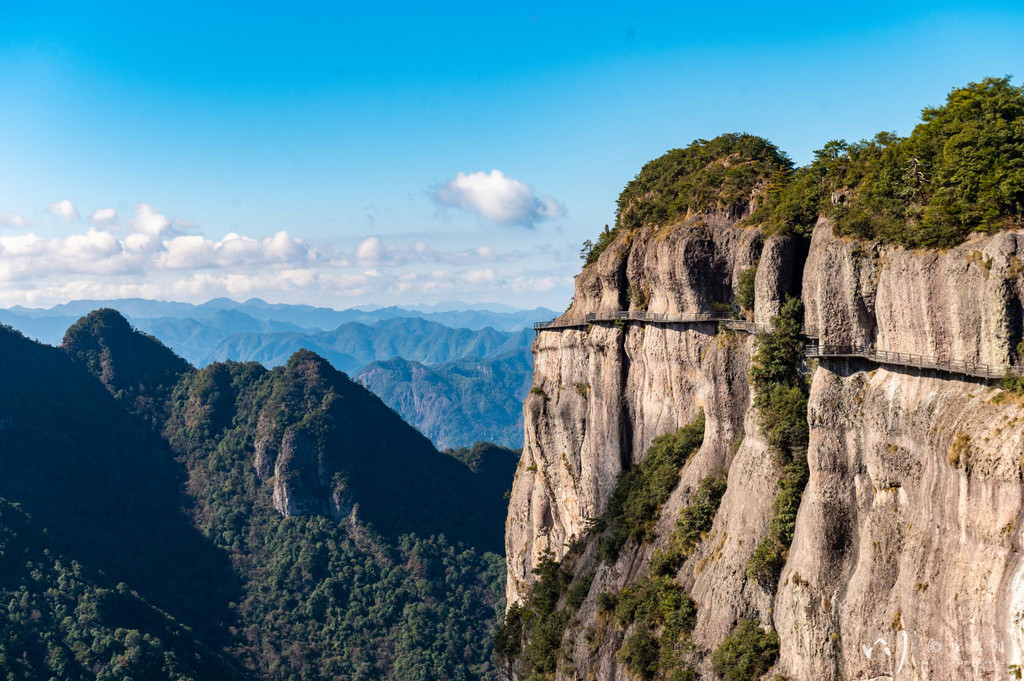 站在悬崖边的栈道欣赏大自然的美景,闻着新鲜的空气,看着雄伟壮丽的风景,非常治愈。