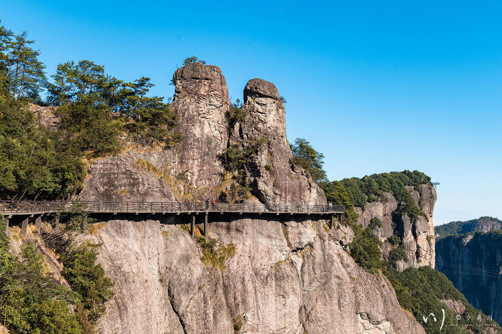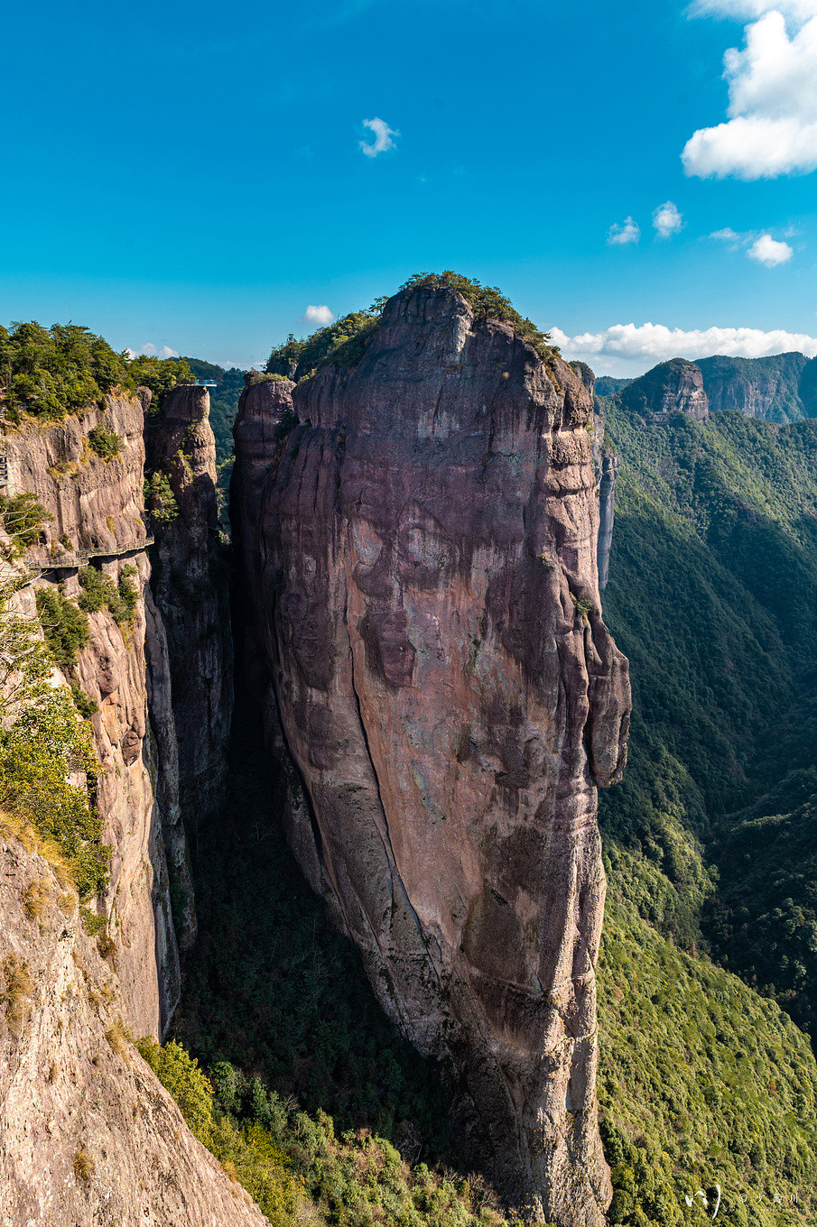 巨大石柱拔地而起,山上栈道便是本线路最陡的路段——青云梯,建议来神仙居的朋友一定要穿一双舒适的鞋子。