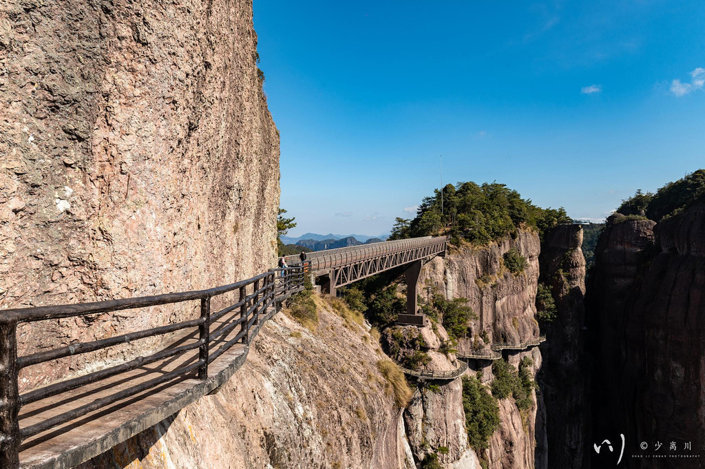 继续往南,一路皆是风景,走在栈道宽平的路面,脚踏实地般安心,可探头一看悬崖,便心跳加速。