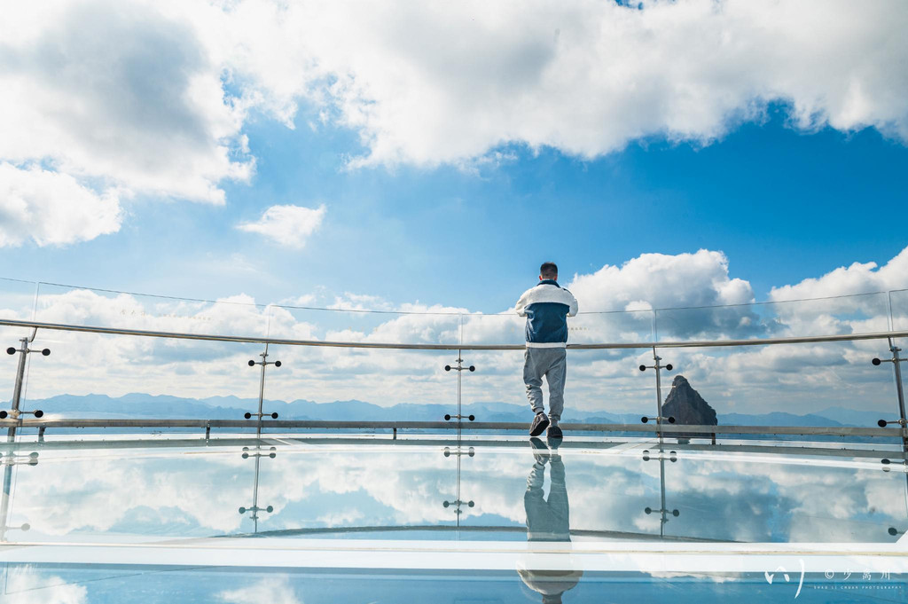观景台分为游览观光层和运动体验层,走在观光层犹如云端漫步,每一步都让人如履薄冰;而运动体验层设有平步青云和步步惊心两大高空体验项目,尖叫指数百分百!