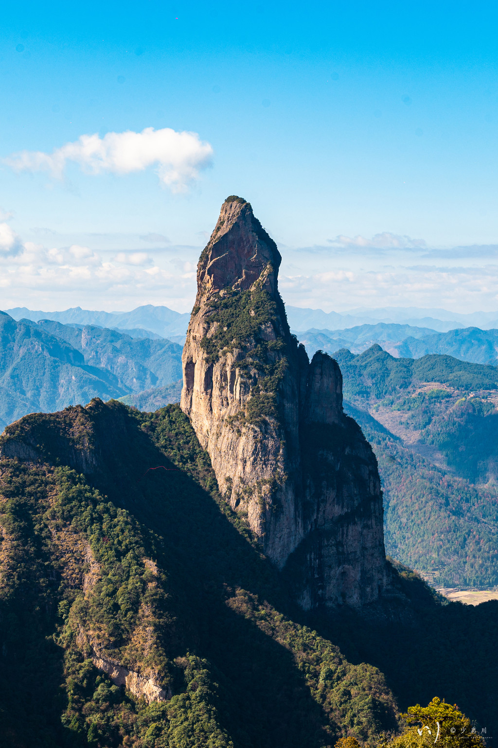 迎面擎天一柱,酷似观音双手合十,这就是观音峰,海拔919米,号称天下第一观音。