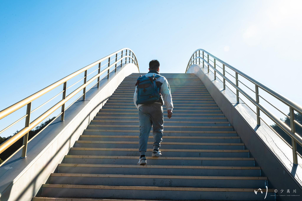 “脚著谢公屐,身登青云梯”,青云梯虽然陡,好在路程不长,一口气就上山了。