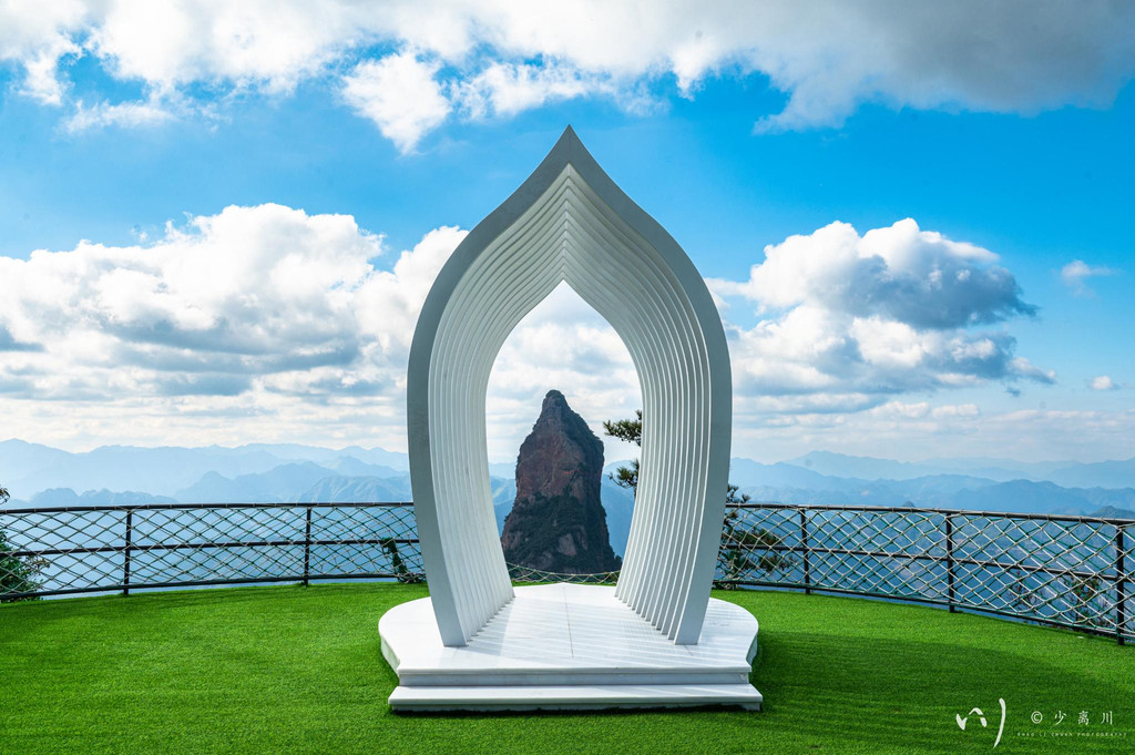 从峰林中向外“生长”的就是莲花台,像山间盛开的一朵莲花,圣洁祥和,这里是和观音峰合影的最佳位置,也是最适合在观音峰前祈福的地方。