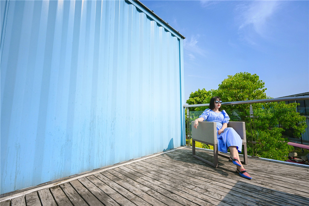 风格各异的集装箱,除了颜色不同外,里面风格也不尽相同 “蒹葭、桃夭、朝朝、暮暮、蝶衣、泡沫……”唯美浪漫的名字搭配不同的主题,,在不同的房间也会带给你不同的感觉。一楼大面积的落地窗,拉开窗帘走向阳台,我们静静的看着窗外的风景,绿意和生机都入眼帘,这种感觉让我们全身心都得到。