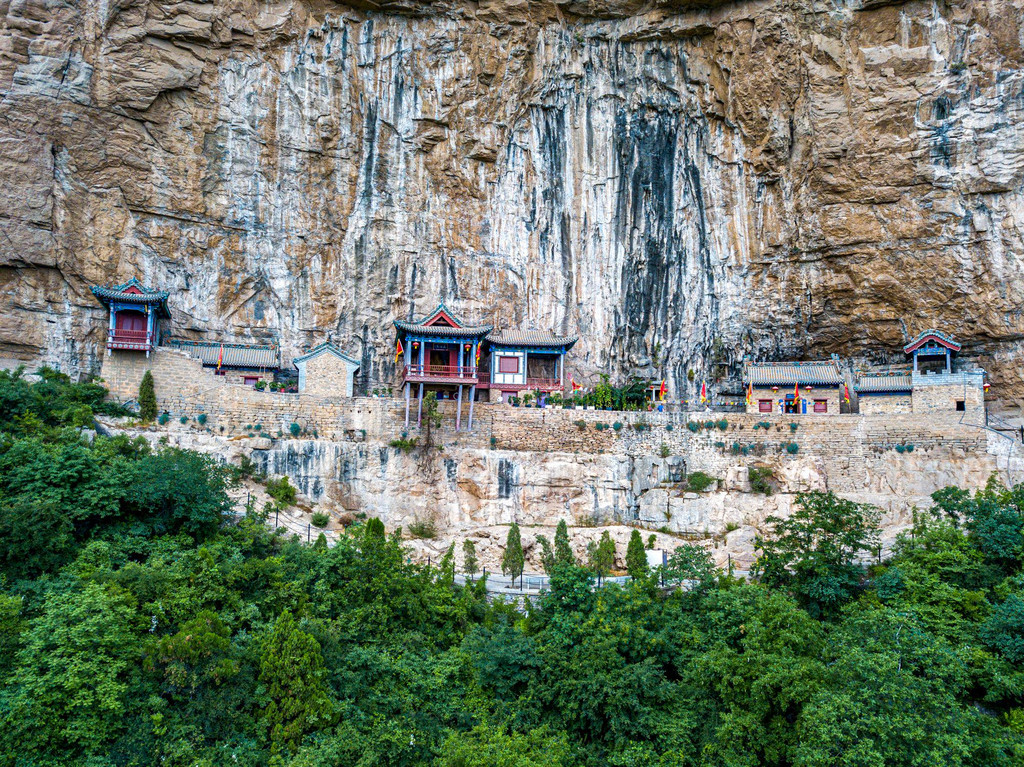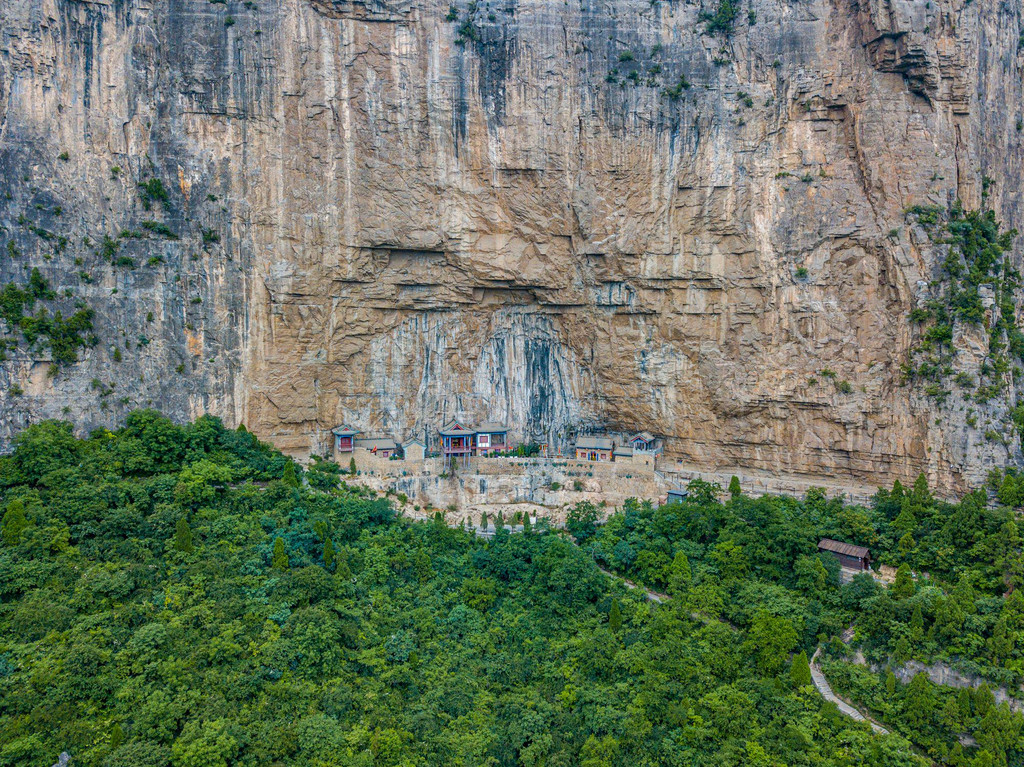 从航拍画面看玉莲洞就在塔尔坡古村落的后面名字叫玉莲洞,其实不是洞穴,其实建在陡峭的绝壁上,玉莲洞真可谓是云丘山独特的奇观,峭壁上高耸的建筑代表着典型的古代建筑结构,经过百年变迁,依然挺立在悬崖上,非常震撼。