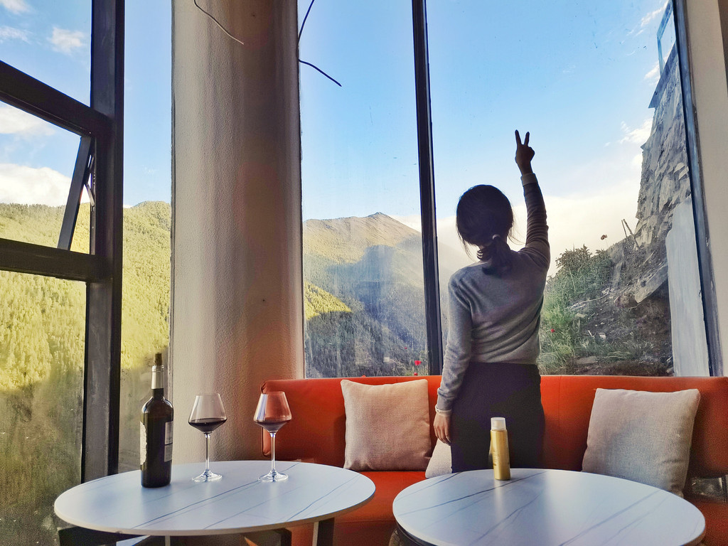 到四姑娘山,整个路程只有4个小时,途径小金县城。秋天来,还可以去路边的果园摘到最新鲜的小金苹果。天空之城在一个山顶,躺在房间内就能看高山。很多宝宝反映都是临时计划的行程,根本订不到这家酒店。敲黑板!出行前一定要在公众号上提前预订!在悬崖餐厅吃饭或者喝个下午茶,一举两得~还有好多拍照打卡点,真的太漂亮了,相机内存都拍的不够用了,住宿条件一样没得说!