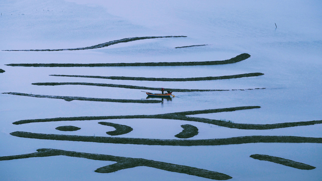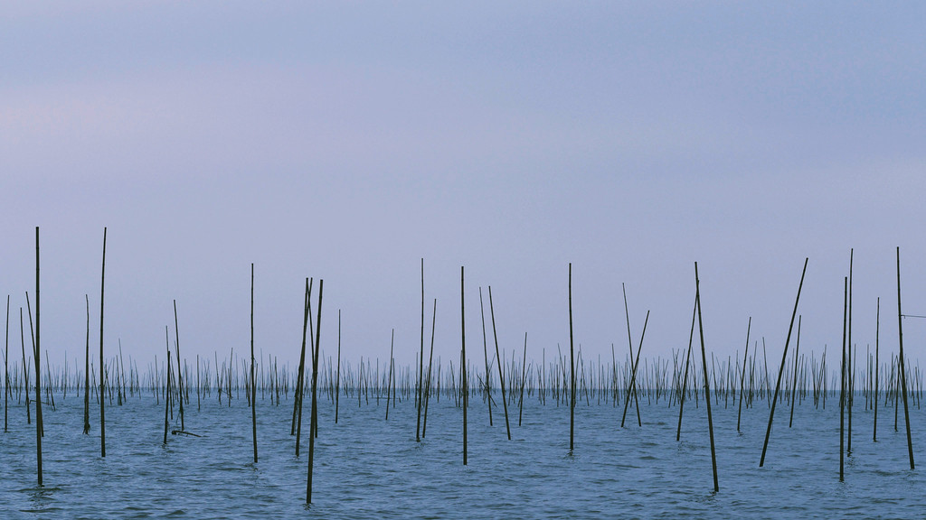 从县城出发到北岐滩涂就五六公里,可惜阴天,缺乏光影,反倒拍出了水墨风~
