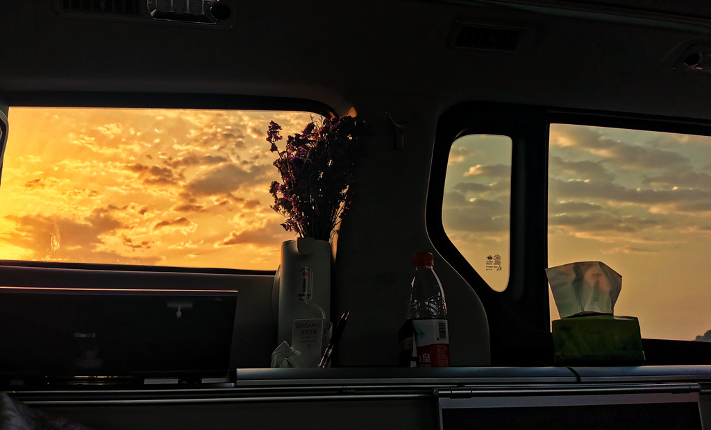 最美的清晨,高速上,躺在车内,迎着日出的晨光醒来~