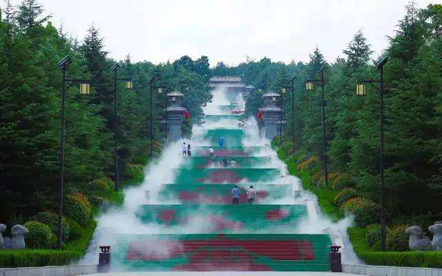 天气热吗?景区有喷雾降温装置,看着很壮观。