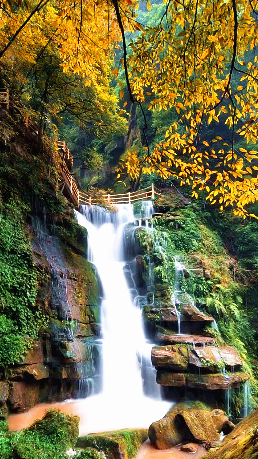 千层瀑布、珠帘瀑布、女娲池、鸳鸯瀑布、青龙潭&白龙潭瀑布...大大小小的瀑布,让四川多了山林壮阔。
