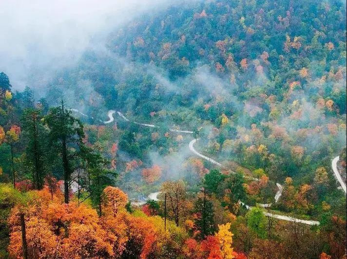 雅安高速通往西昌方向,这一带的秋色真的很美。远远望去,能看到群山半隐半现在云层中,恍若仙境。