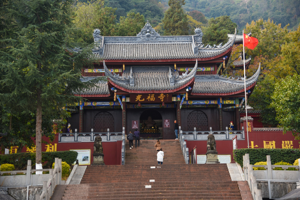 从博物馆出来可以继续向山上攀登,从山脚登上山顶约八公里,需要一定的脚程才能到顶,如果你没有那么多时间或者经历的话,也一定不要错过了泸山的第一座古刹“光福寺”。这里的观景台可以俯瞰邛海与西昌城,天气晴好的时候十分通透,怪不说被誉为“天南胜景”。