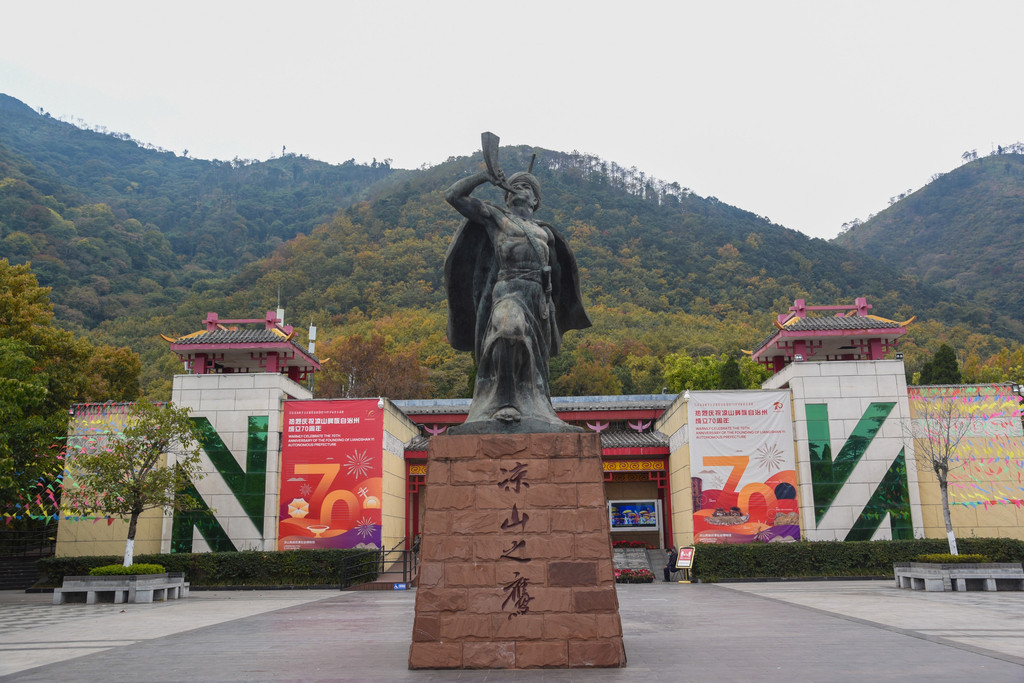 凉山彝族奴隶社会博物馆背依青山、面临邛海,与其他很多博物馆不同,它的外形就很具有彝族古典风格,正前方一尊雕塑不仅身着彝族传统服饰,下面的四个大字“凉山之鹰”,也源于彝族为鹰的后代的传说,富含当地特色。