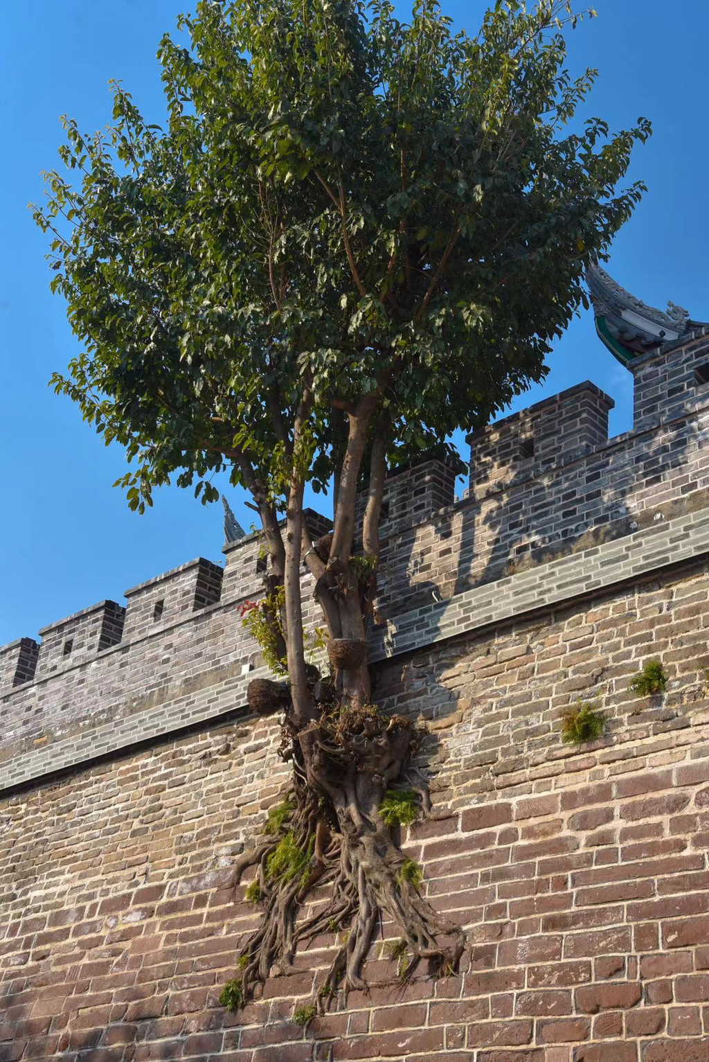 既然是代表西昌的过去,那么为什么这里叫做“建昌古城”而不叫做“西昌古城”呢?那是因为建昌之名远比西昌来得更久远,这里古称就是建昌,直至清雍正六年裁建昌卫设宁远府、置西昌县,“西昌”之名自此始,刚走进建昌古城,就能看到建昌古城的一大奇观-生长于城墙夹缝中盘根错节的古树,它们就像是守望者,注视着这座城市的变迁。