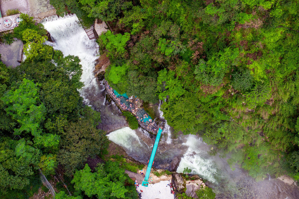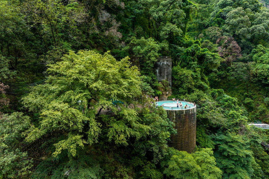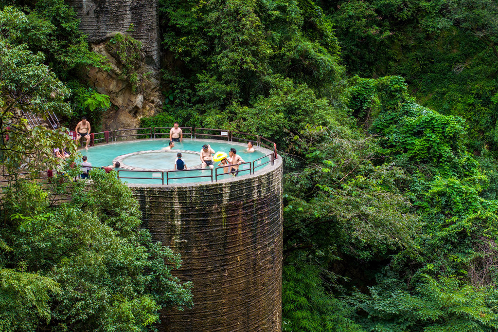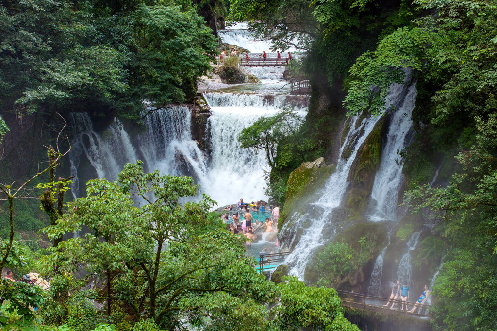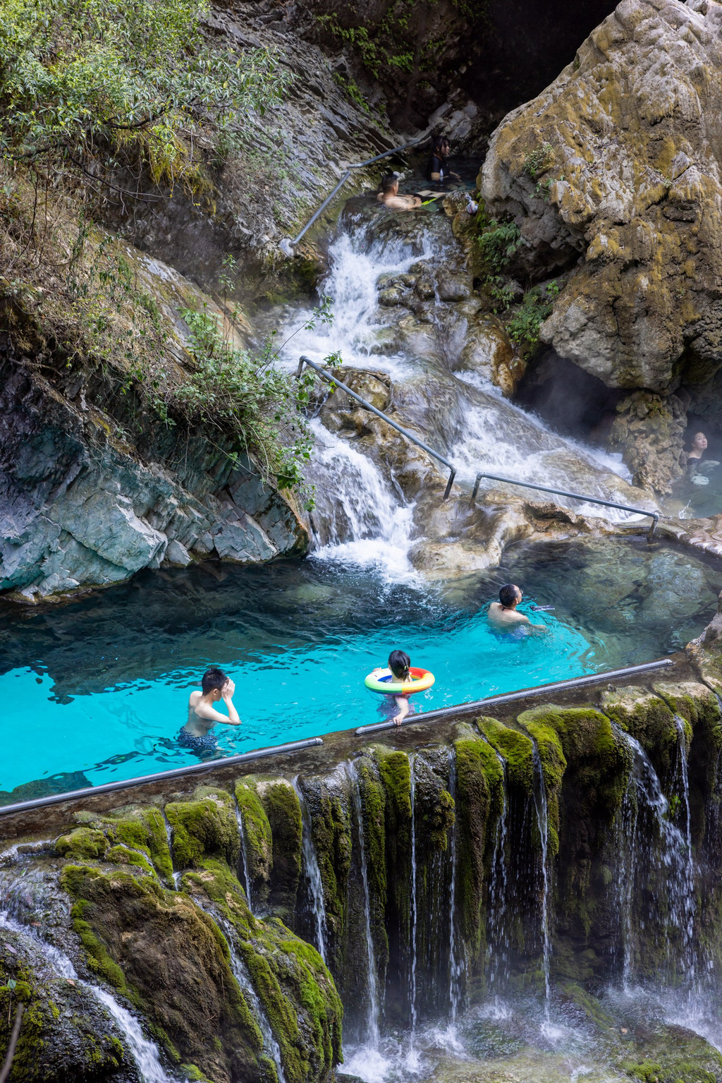 螺髻山不远处,还有一个比山景更美的地方九十九里瀑布温泉,见过各式各样的温泉,这种直接将温泉修在瀑布群中的,还是头一回见!周日,就一整天泡在这里,寄情山水间,洗去一身的疲惫。