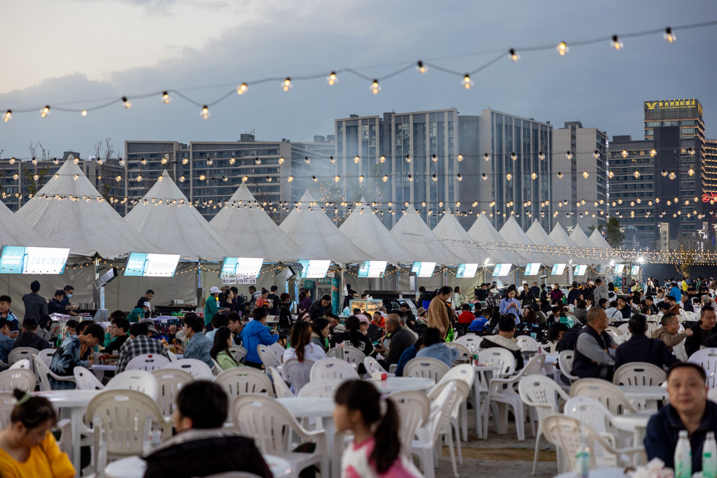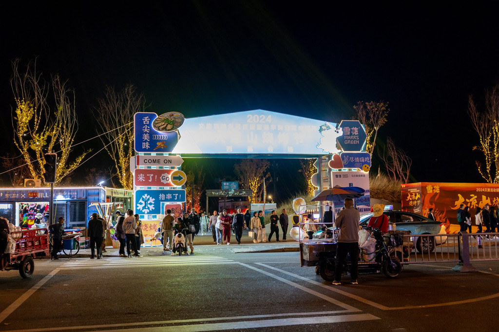 大凉山也太超前了,别的地方要等到七八月才能过的烧烤节,这里已经热热闹闹拉开了帷幕……黄昏时分走进星月湖公园,晚霞映照下的公园美轮美奂,微风带来一丝凉意,同时营地的灯光照亮了夜晚,空气中弥漫着诱人的烧烤香气。据悉,大凉山全州17个县(市)的知名烧烤商家齐聚一堂,他们各显神通,提供各种美味的烧烤,包括香糯的高山小猪肉、新鲜的牛肉、美味的小肠和牛筋,还有爽脆的毛肚黄喉等,各种新鲜食材在高温的炭火上烤制,伴随着特制的蘸料,让人回味无穷。