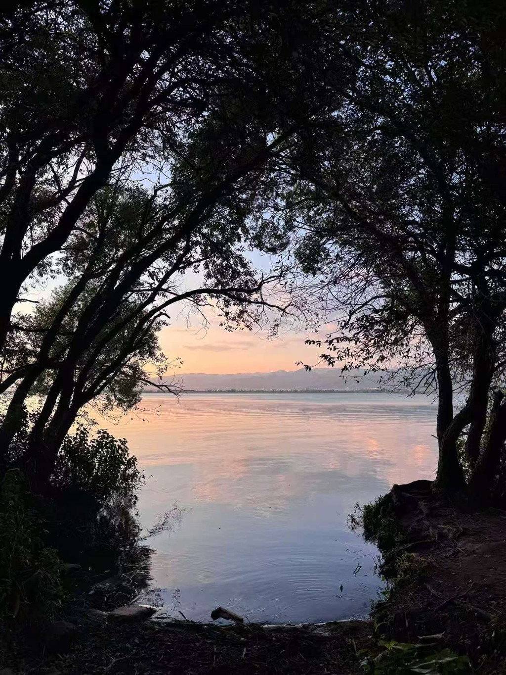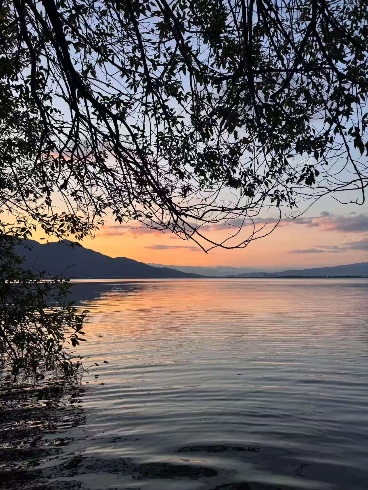 随着夕阳西沉,天空渐渐被染成橘红、粉紫渐变的色调,湖面也跟着“换衣服”,从湛蓝变成温暖的橘色,连远处的泸山都被镀上金边。此时随便按下快门,不用滤镜就是氛围感大片。等到余晖散尽,天边的晚霞还会停留许久,仿佛在悄悄说“别急着走,浪漫还没结束”。看完日落别急着走,湖边的晚风带着草木清香,吹走所有烦躁,这才是假期该有的样子~
