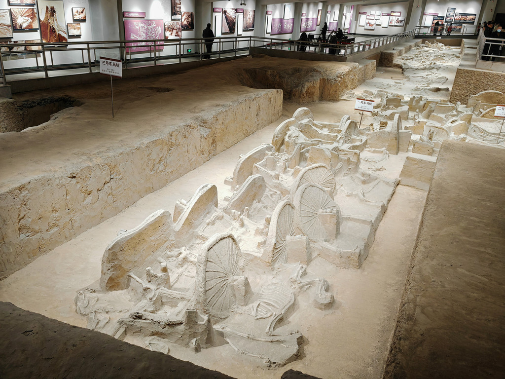 车马是两周时期重要的交通运输和战争工具,也是等级身份的标志之一,气势恢宏的车马坑群,充分展示了虢国强大的军事实力和在周王朝中的显赫地位,也反映了虢国贵族的奢侈豪华生活