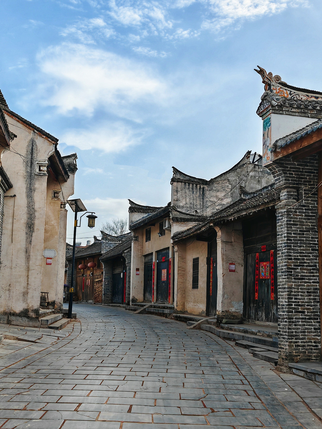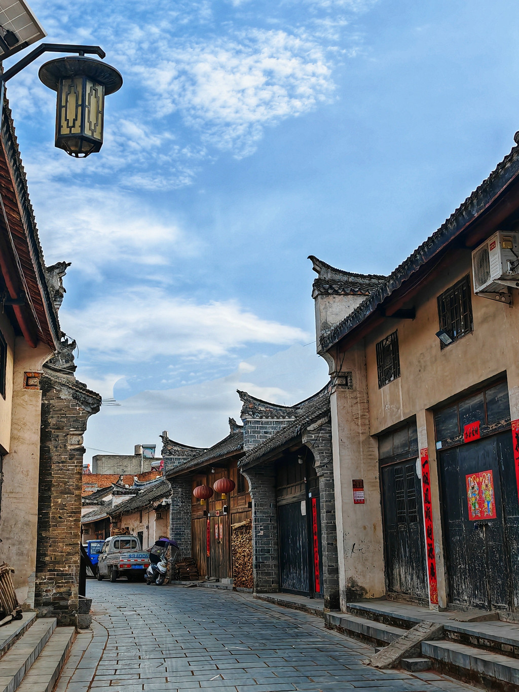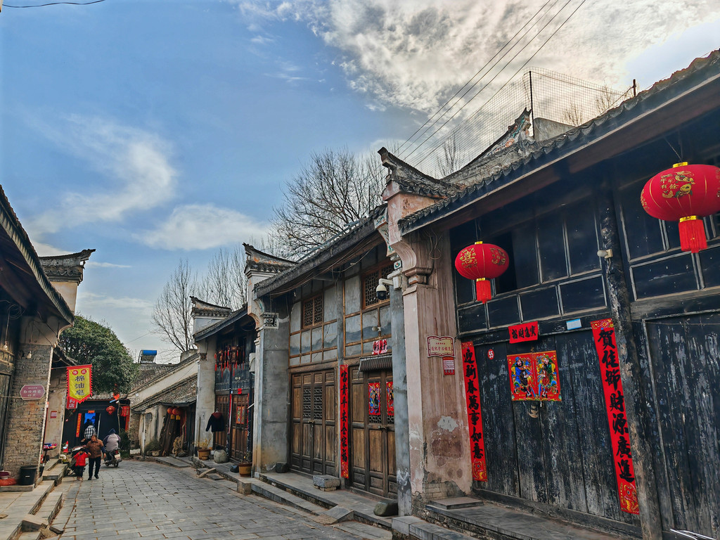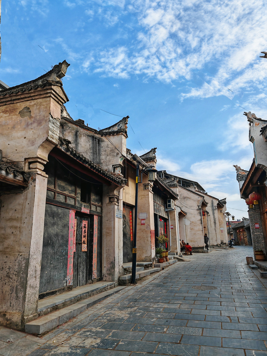 明清古街上的房屋交相辉映,相映成景。破败的石门上残留着历史的痕迹,门上贴着对联,窗上充满了报纸糊过的印迹,最原始的模样依旧保留下来,别具一格,饶有神韵