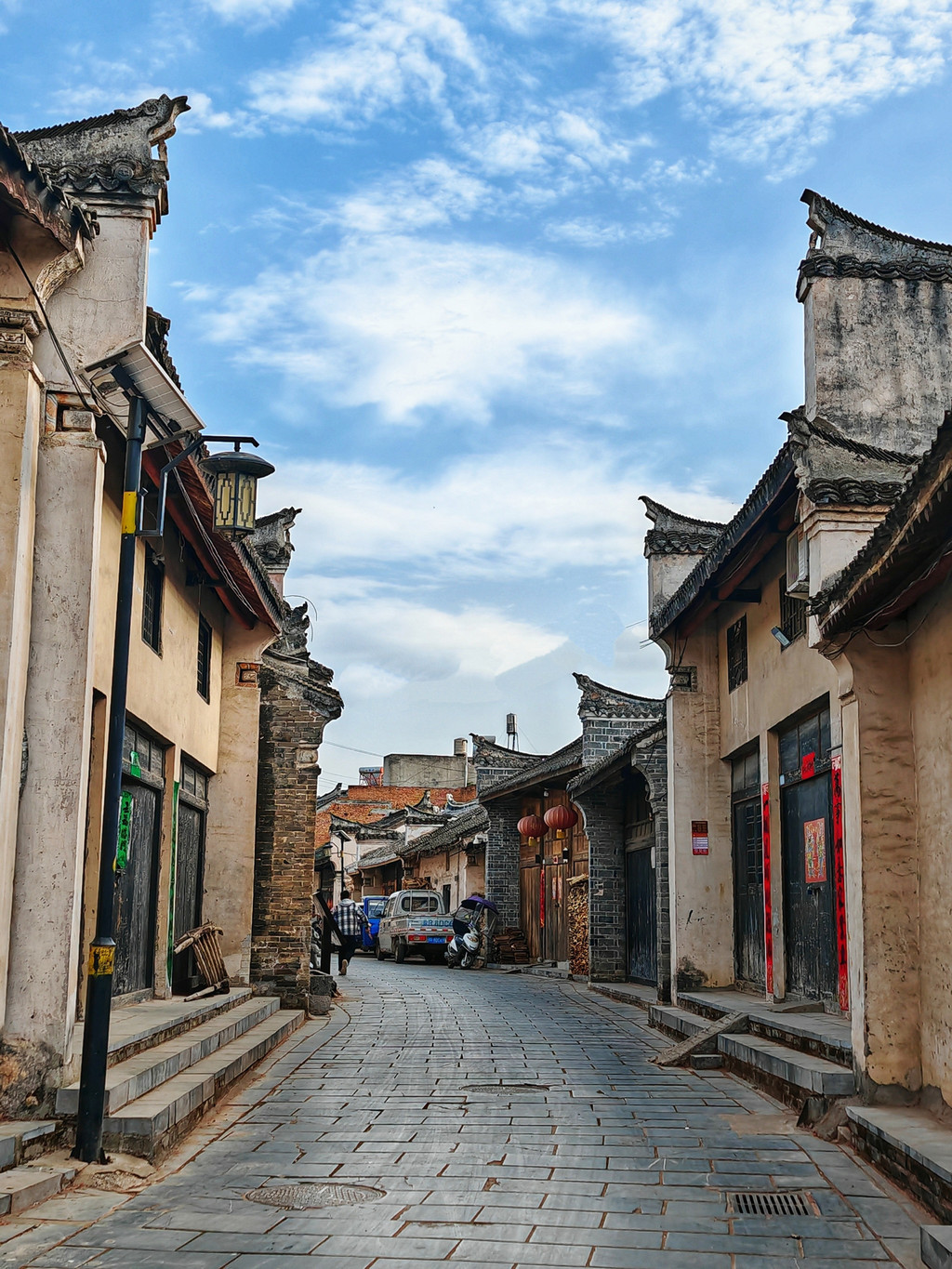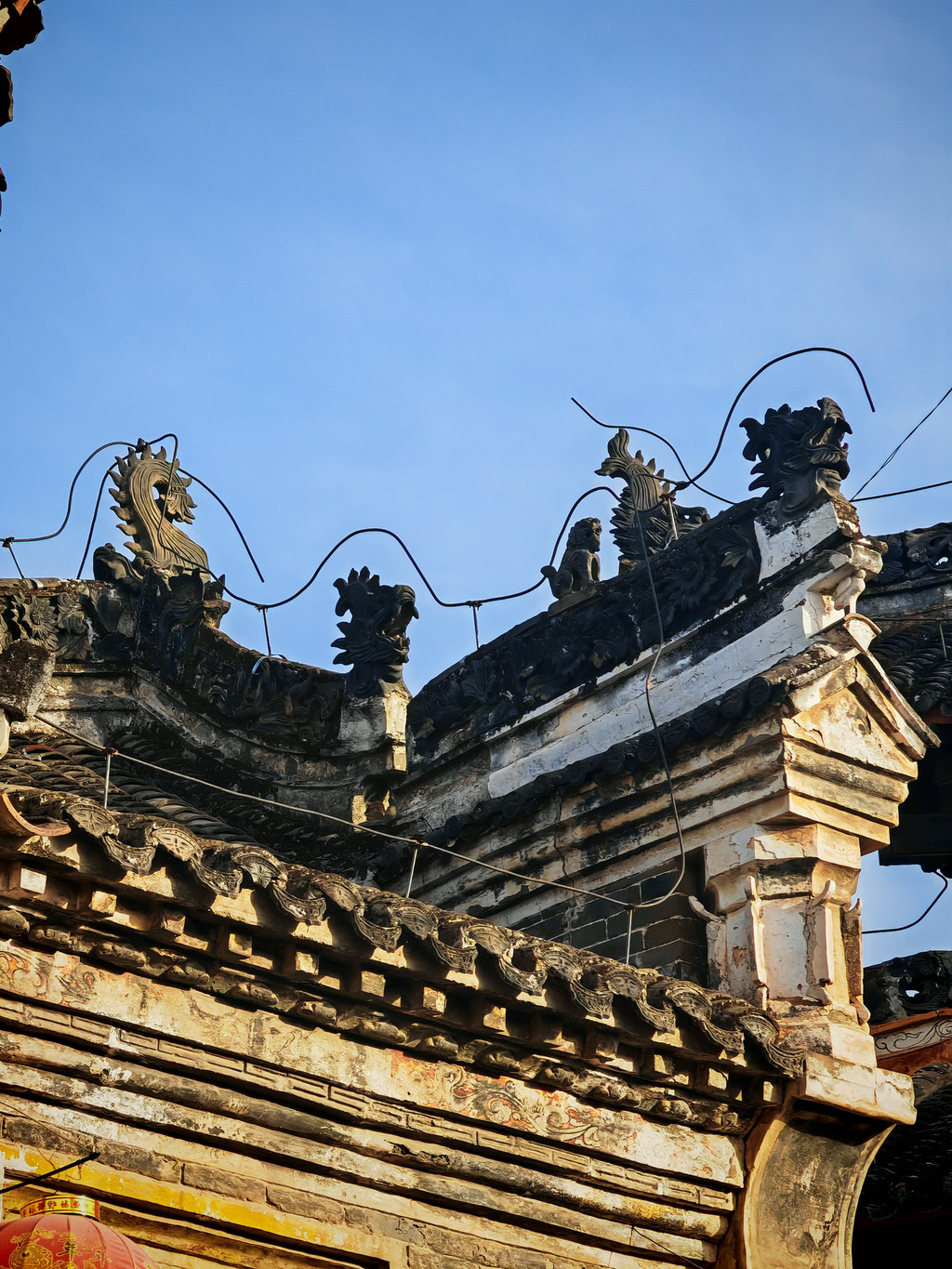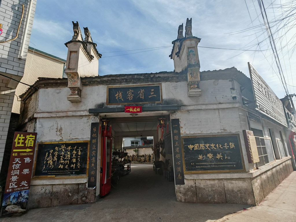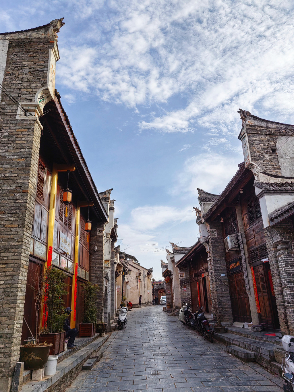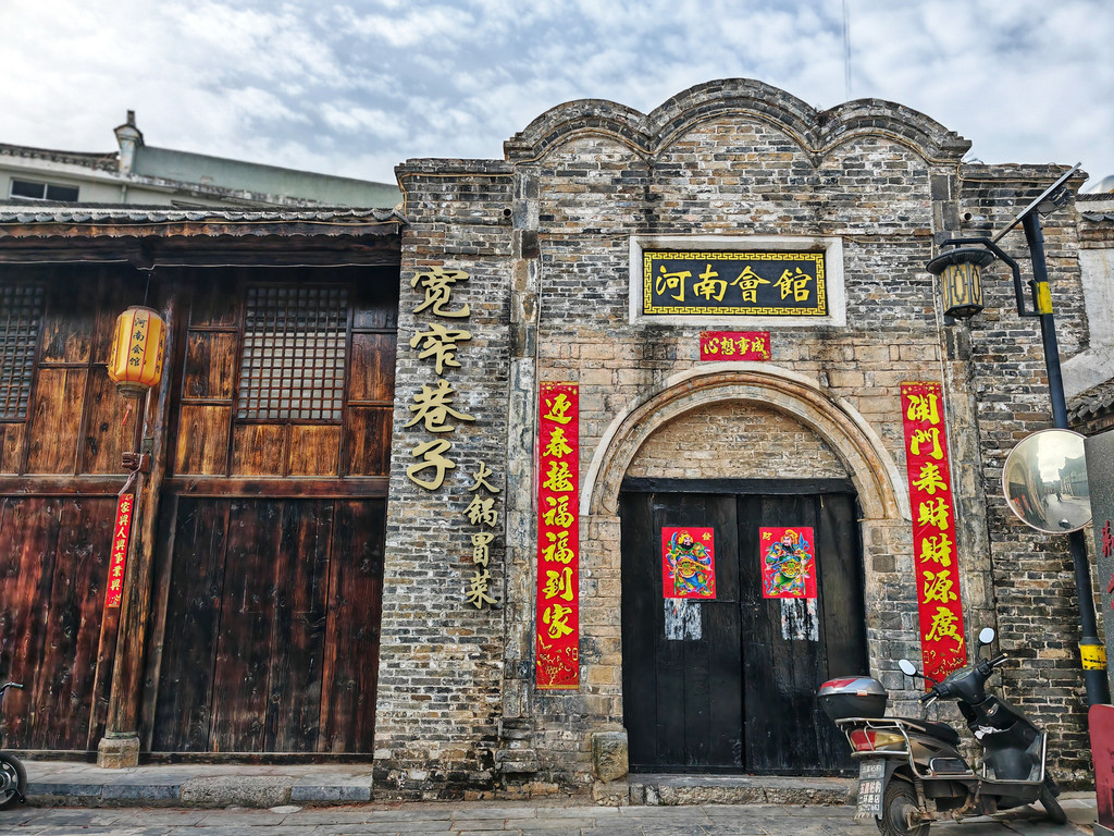 明清古街上的房屋交相辉映,相映成景。破败的石门上残留着历史的痕迹,门上贴着对联,窗上充满了报纸糊过的印迹,最原始的模样依旧保留下来,别具一格,饶有神韵