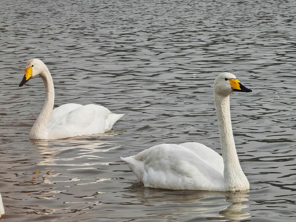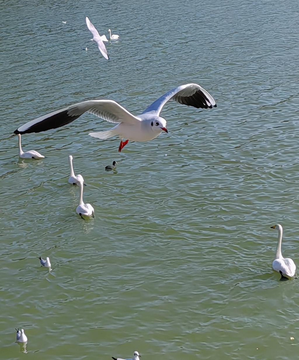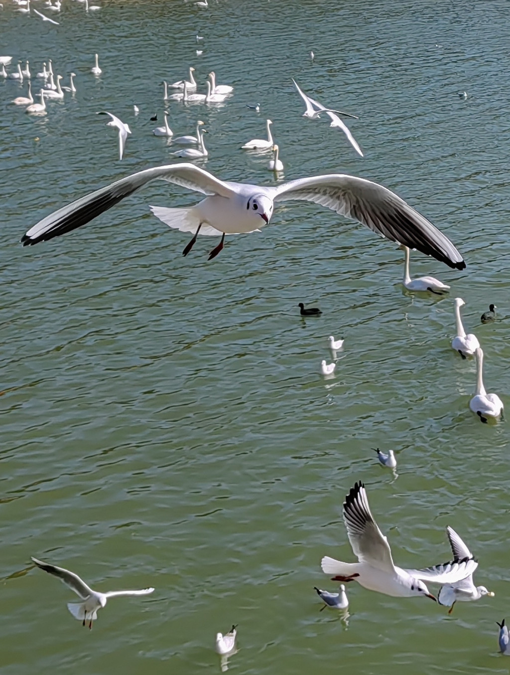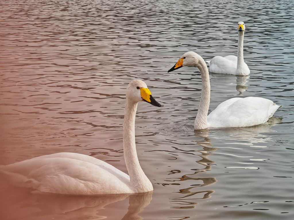 天鹅湖的宁静时光,在广阔明澈、碧波荡漾的湖面上,成群结队的天鹅自由飞翔、飘游、嬉水、觅食……这些来自远方的白色天使,千姿百态,构成一幅幅动人的画面