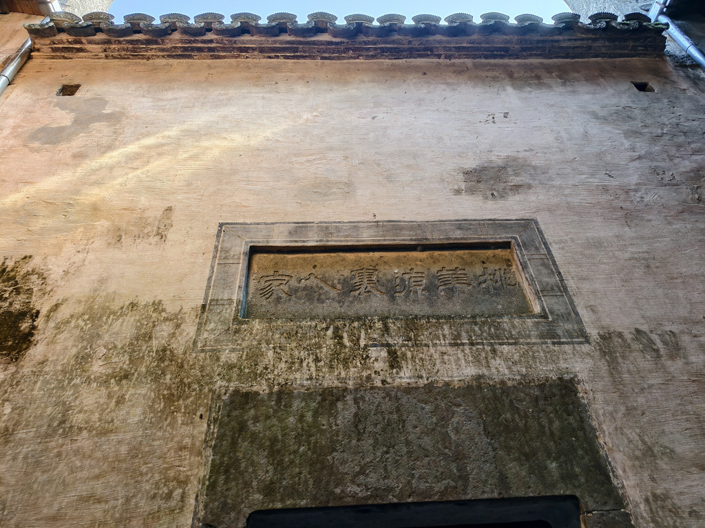 后进门墙有“桃花源里人家”的砖雕匾额。