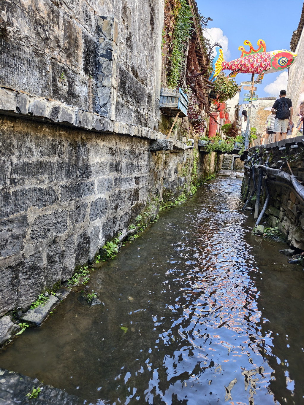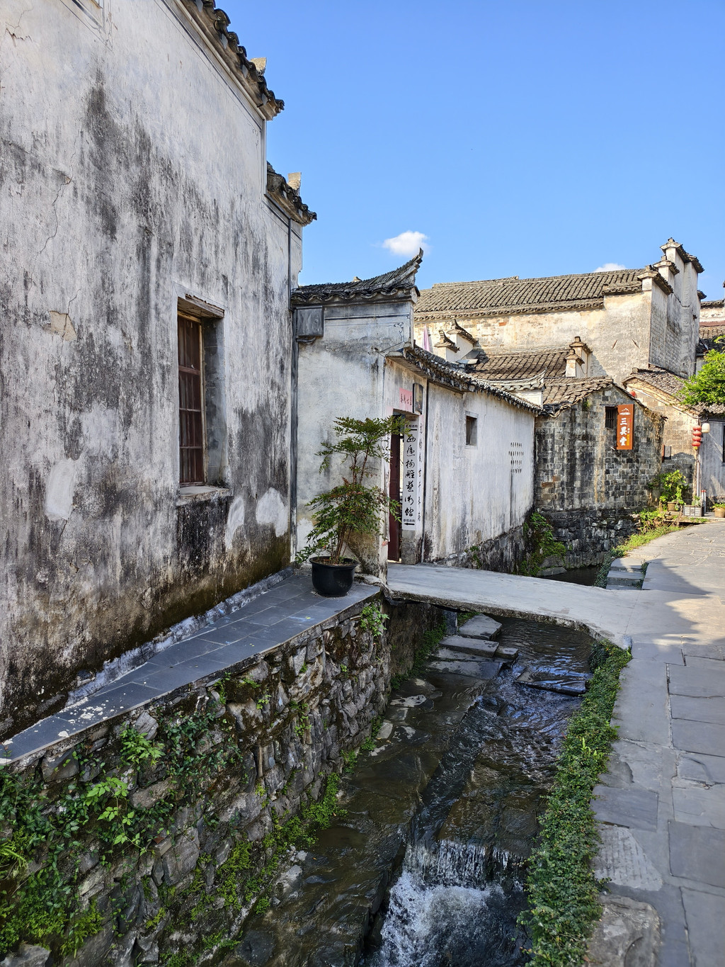 漫步西递村落,留意到水圳,依地势自然流淌的溪流经过沿途街巷民居,绿水人家绕,也许水圳是徽派古村落的标配水系布置罢。