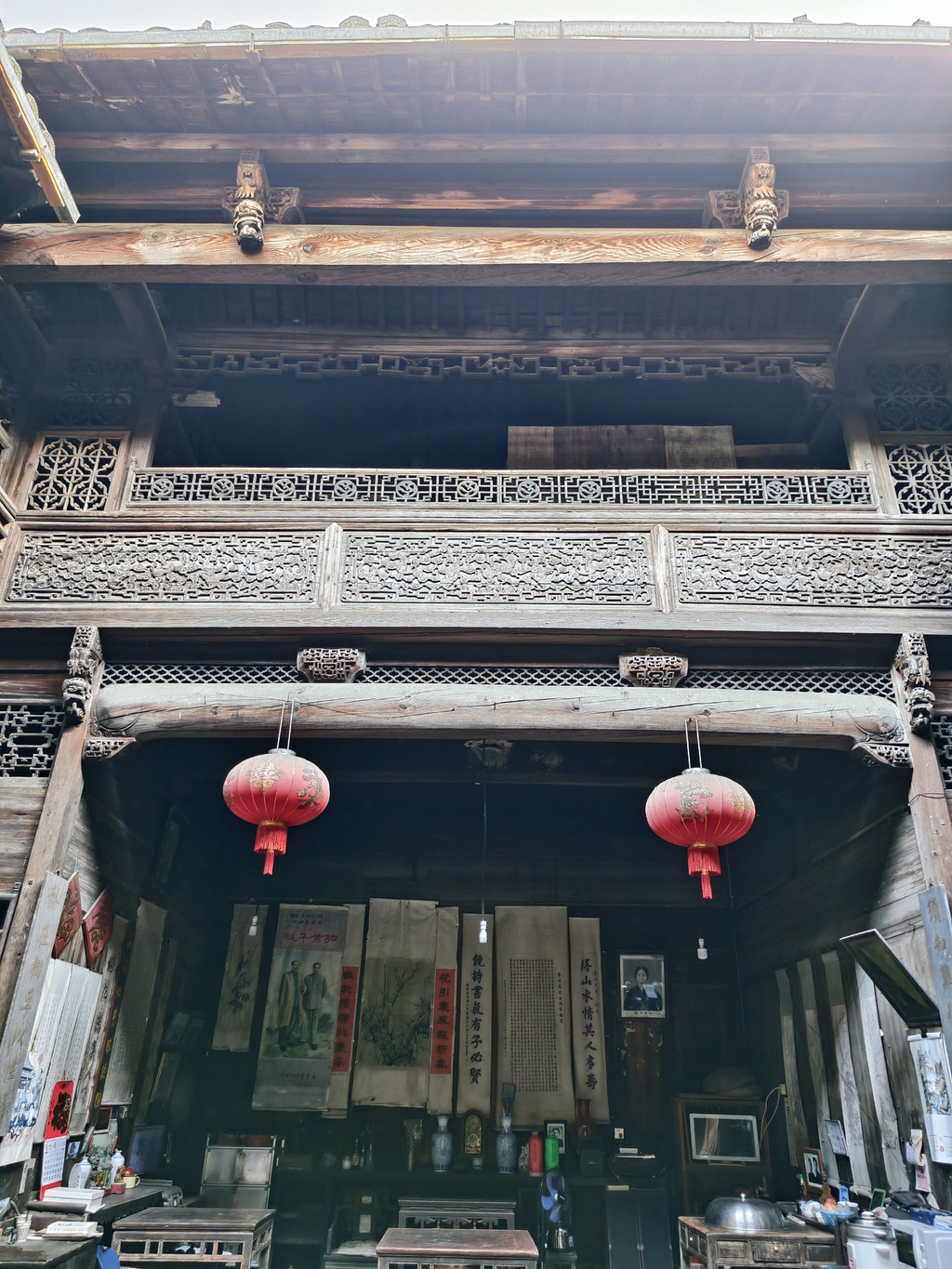 楼上的小楼悬“桃花源里人家”和“山市”的匾额,应是屋主人当年观景之所,也可视作小姐的绣楼。