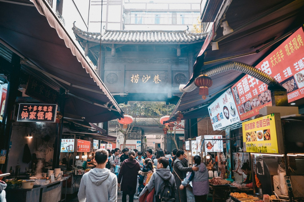 从 遵义 会址出来,就是 遵义 著名的美食街——捞沙巷。