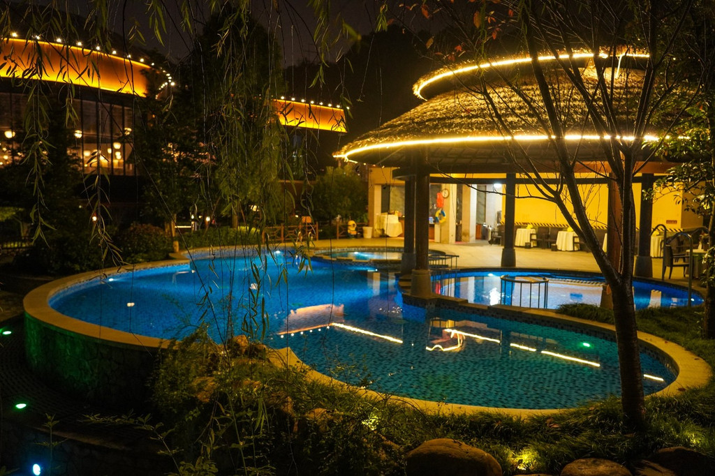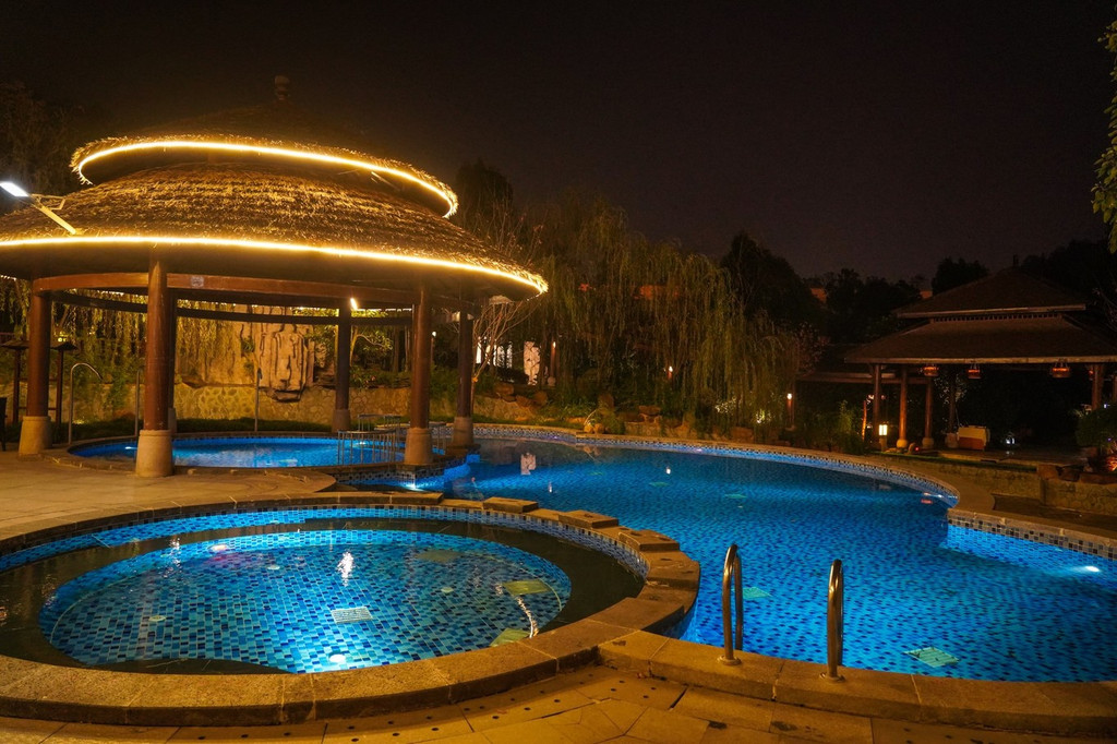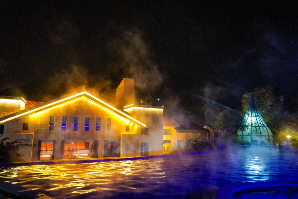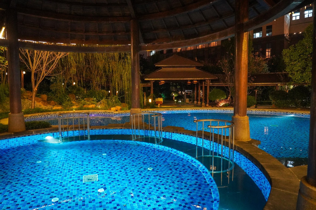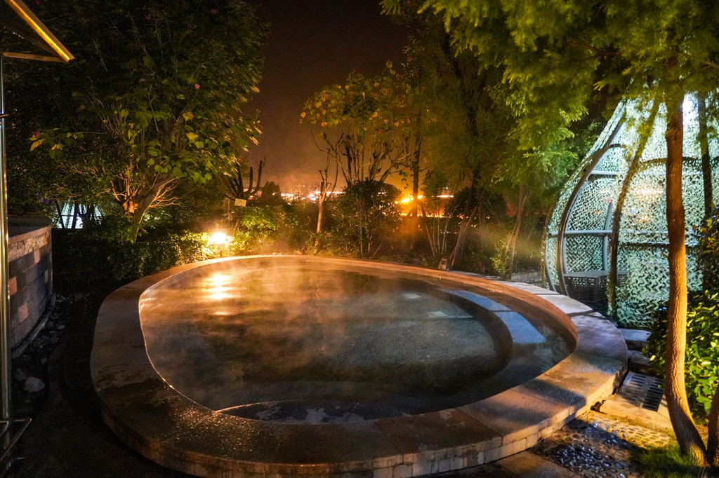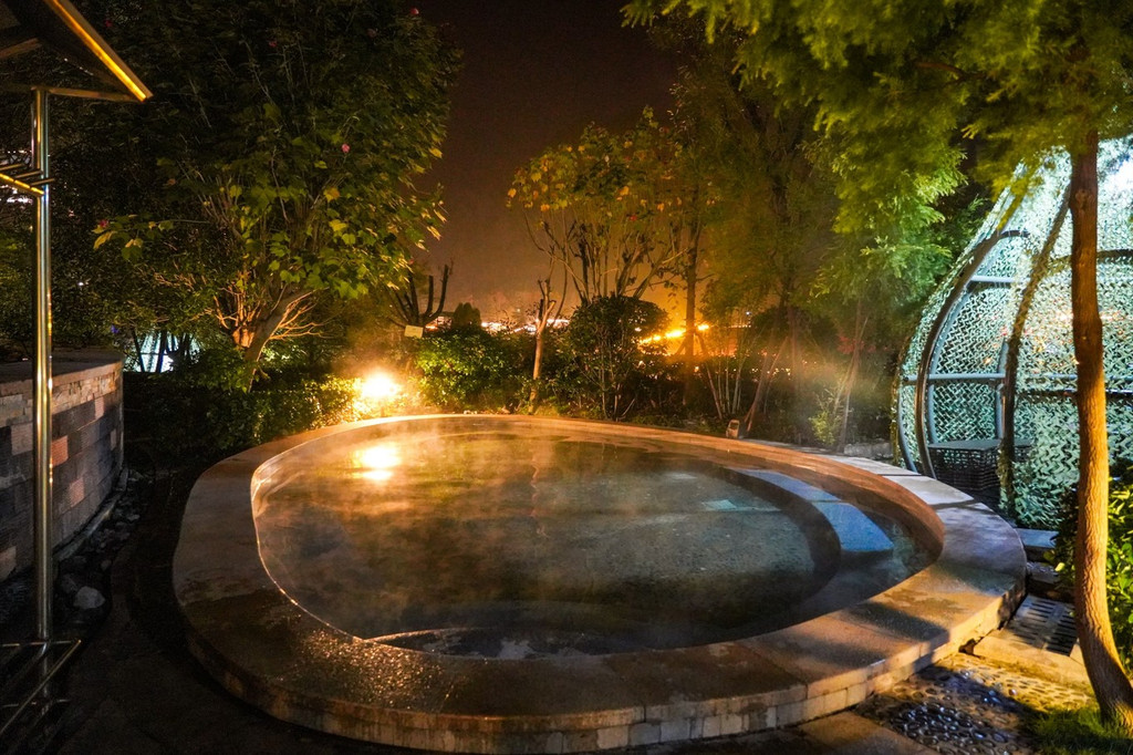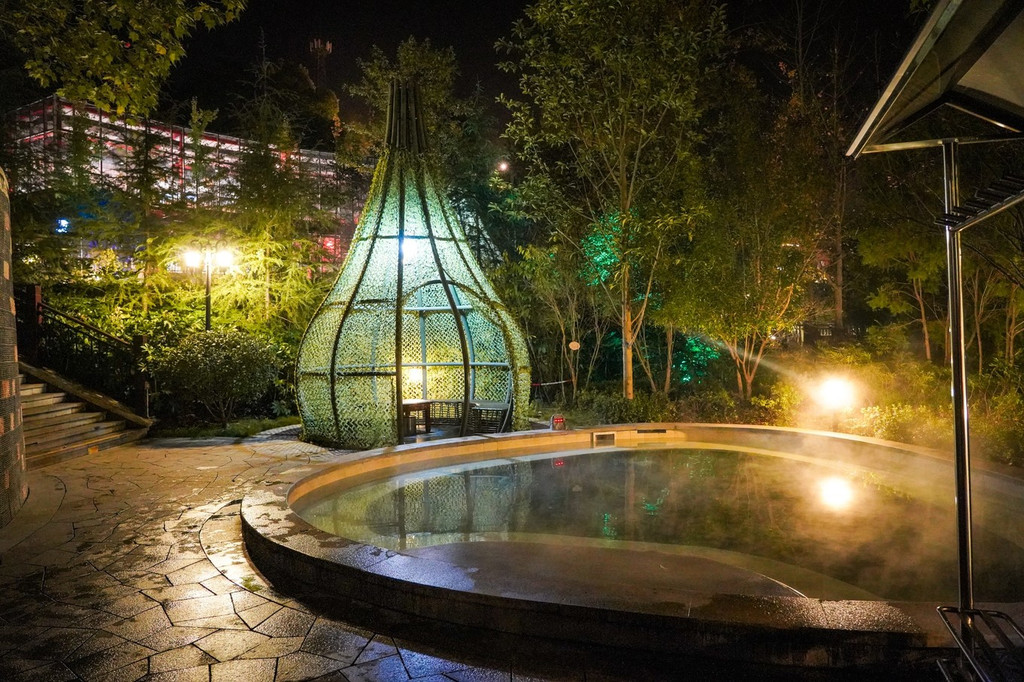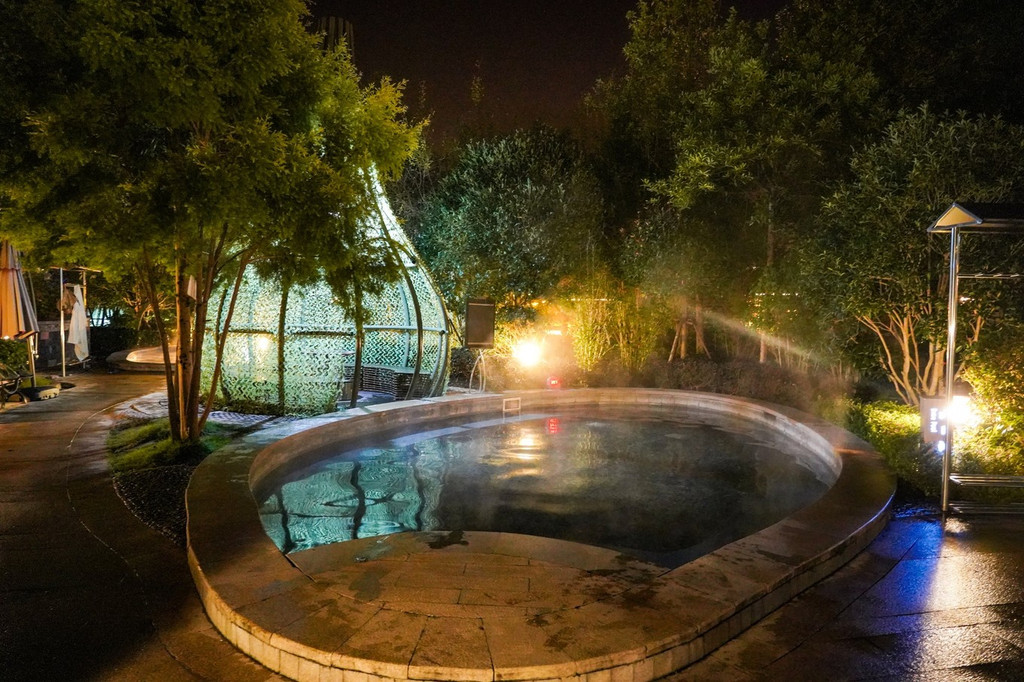酒店总共有40个加料泡池,10余个原汤泡池,每个汤池都设有不同的功能区。