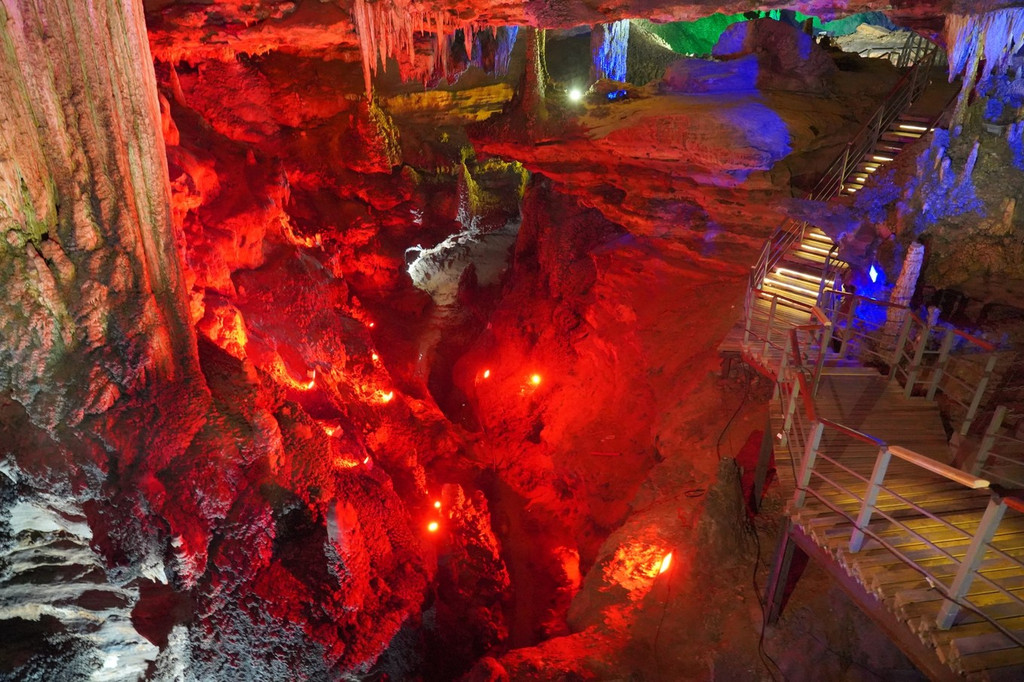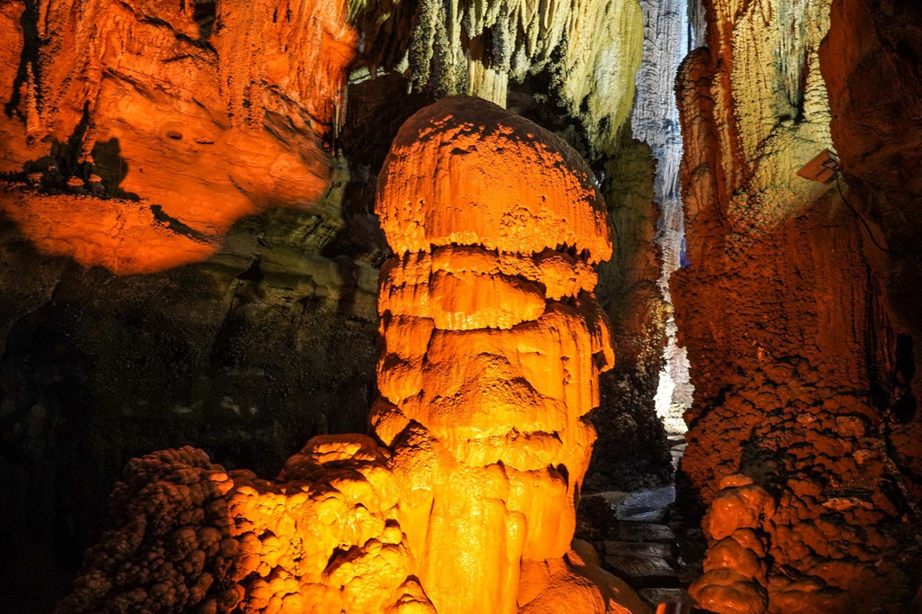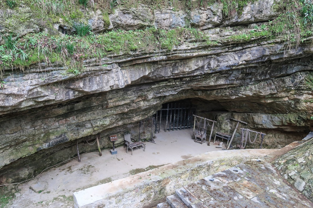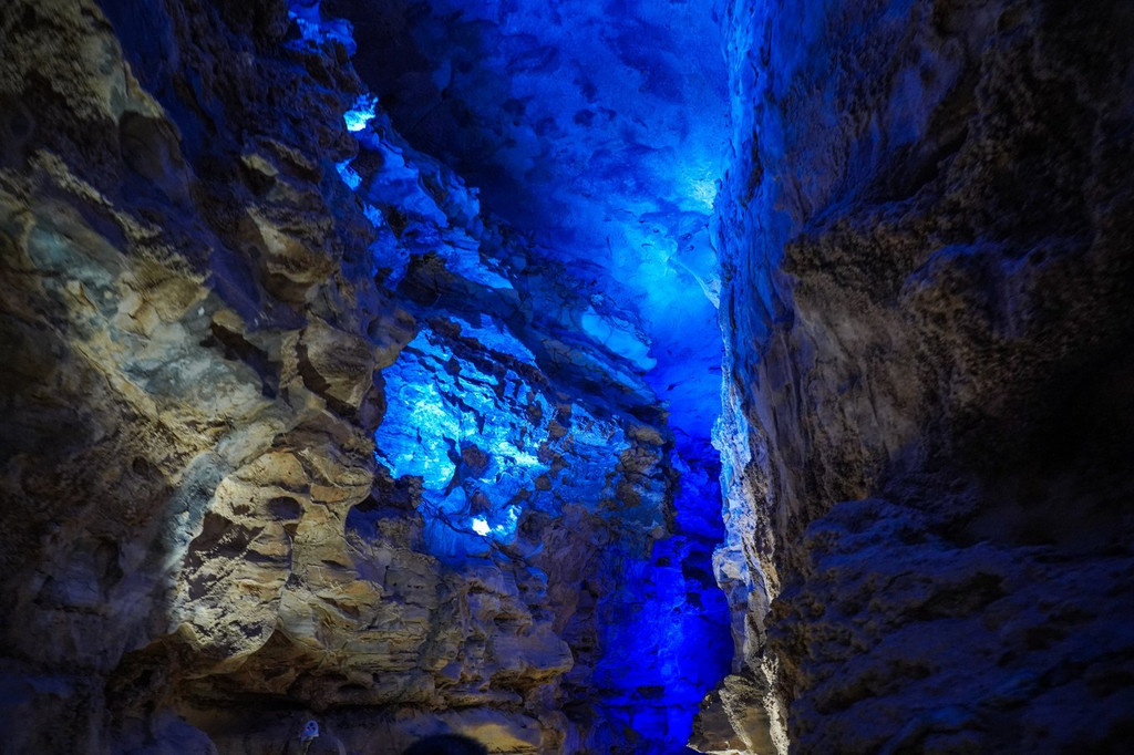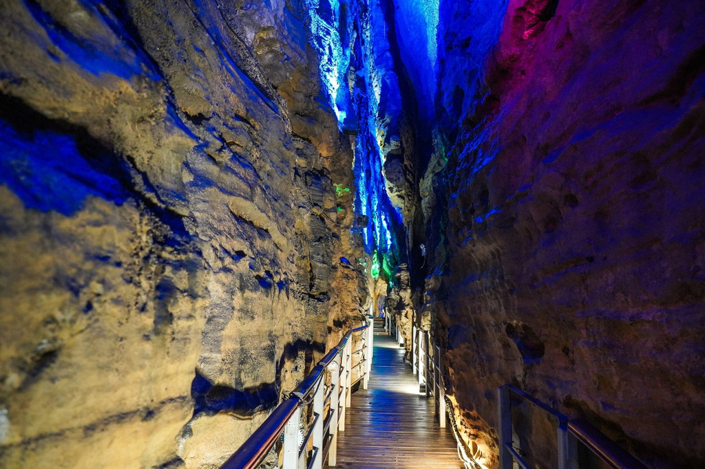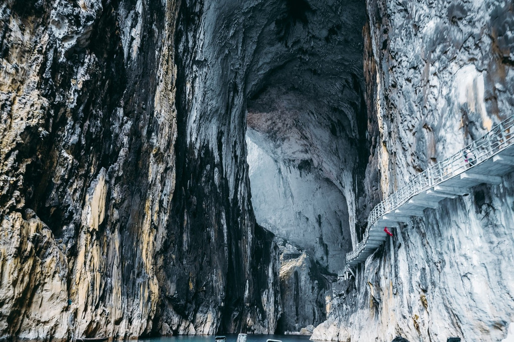 顺着栈道往上走,穿过钟乳石与暗河,可以走近地心之门,我们就在这边静静驻足观赏,他就静静在那边继续任由时光流走。