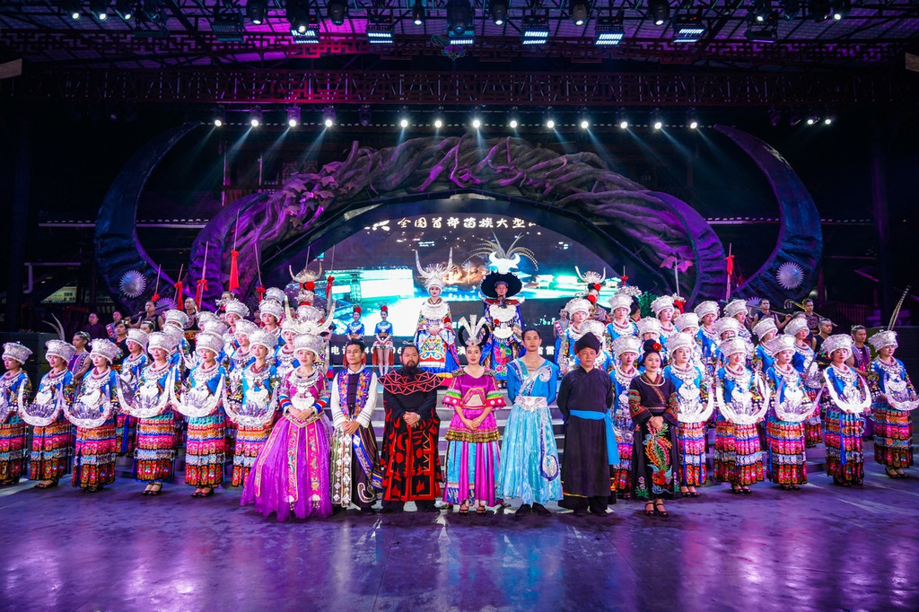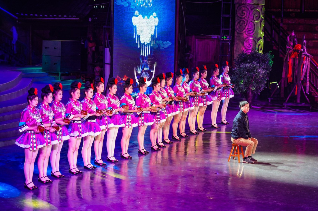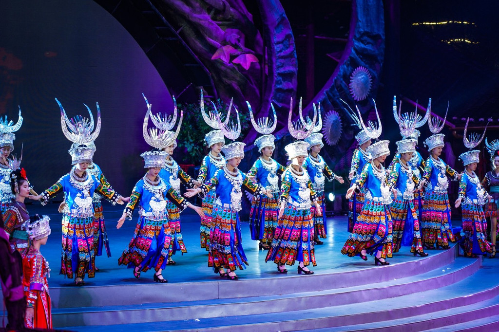 美丽的苗族姑娘,在舞台的灯光效果下,更加炫彩夺目。