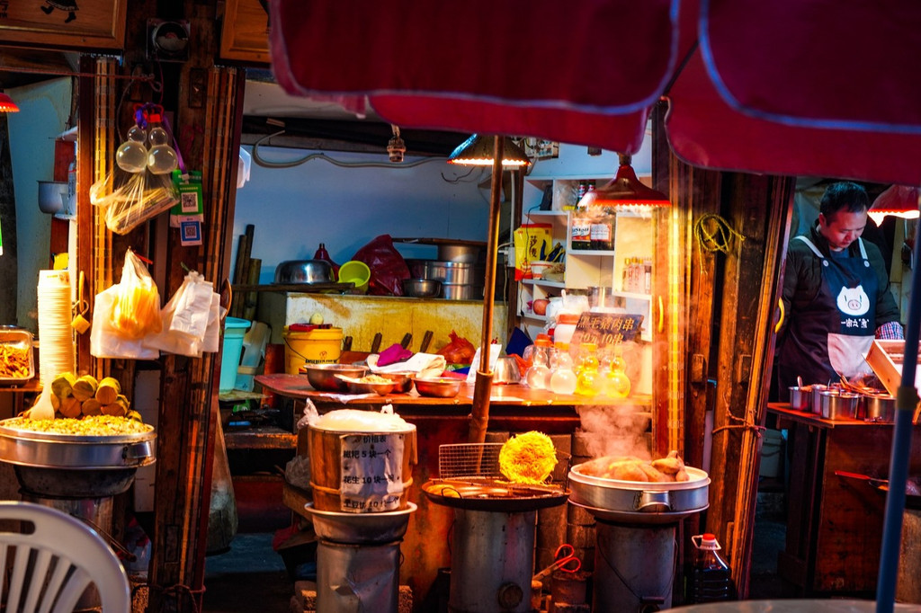一条50米左右的街道,两边全是美食,熙熙攘攘的人群,充满了香火气息。