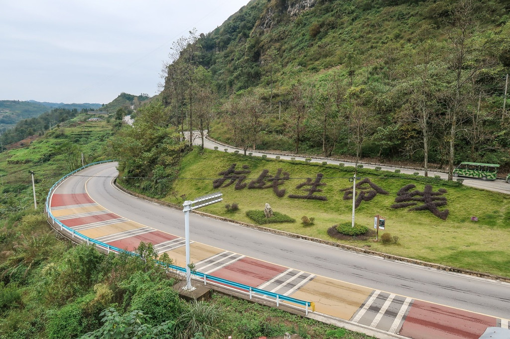 继续乘坐景区的电瓶车到对面的观景台,不用无人机也能俯瞰整个 晴隆 24拐的全貌。