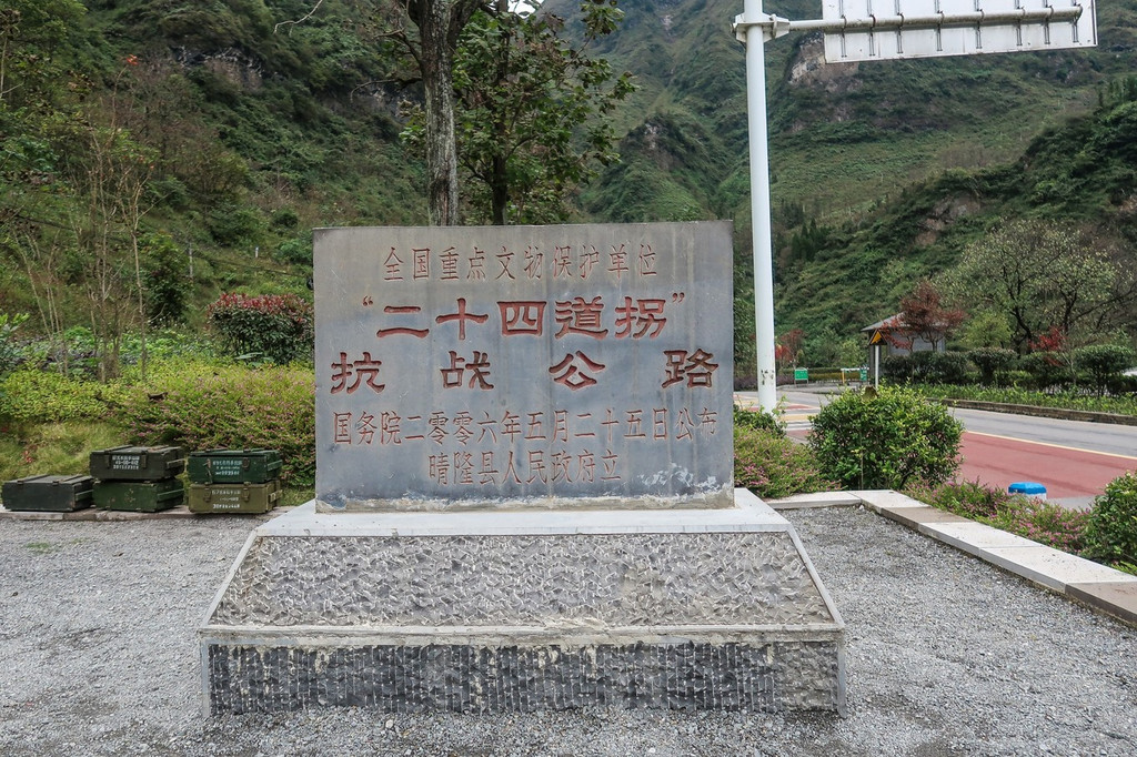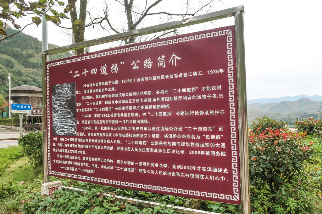 始建于民国24年(1935年),次年竣工,是当时黔滇公路的重要组成部分和必经之路,是著名的史迪威公路的形象标识,全长约4公里。公路依山就势筑造,工程艰险,山势陡峭,二十四道弯犹如游蛇前行,气势磅礴。