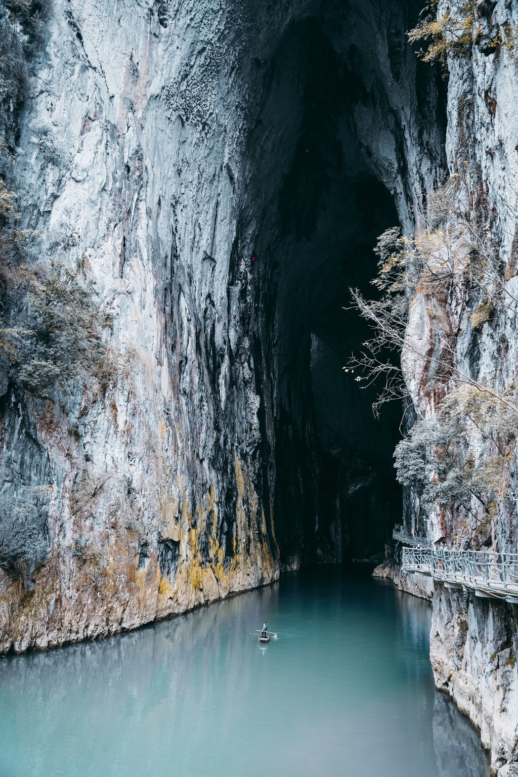 然后从苗寨继续做船,就是格凸河最惊艳的三个洞穴,最神奇的是河流流进洞穴就不见了,然后一束光从天而降。当地人说洞内是一个大瀑布,流入了地下河。