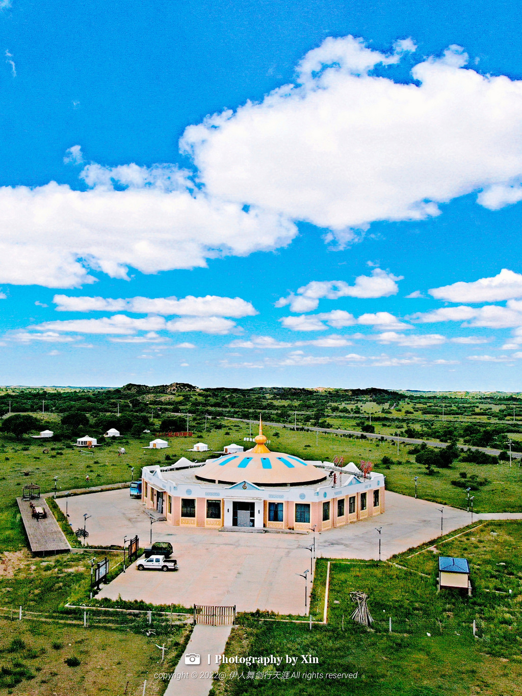 在锡林郭勒千里草原风景大道上有一个独特游客中心,虽然身处国道边,却是个幽静静谧的存在,作为建筑设计美学爱好者,看到乌日图塔拉很是欣喜,从2018年改造至今,用了4年时间变身为传统与现代,经典与时尚并续的“驿站”,建筑面积1368平米,拥有1000亩沙地草原的营地。