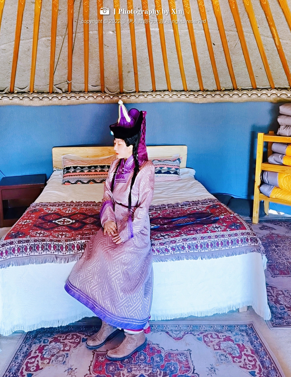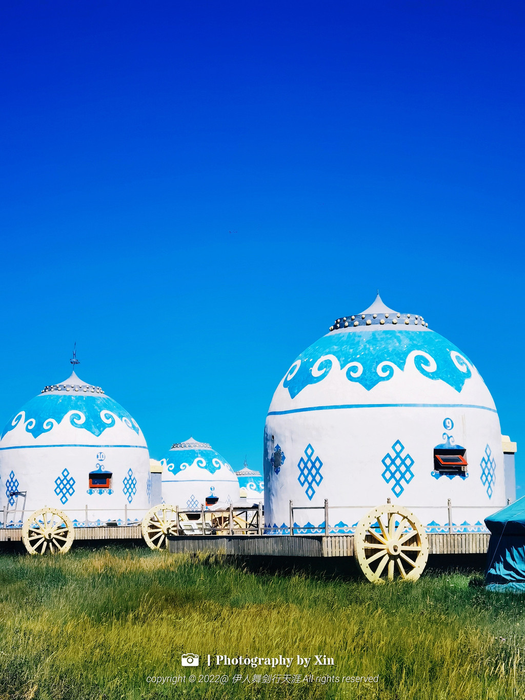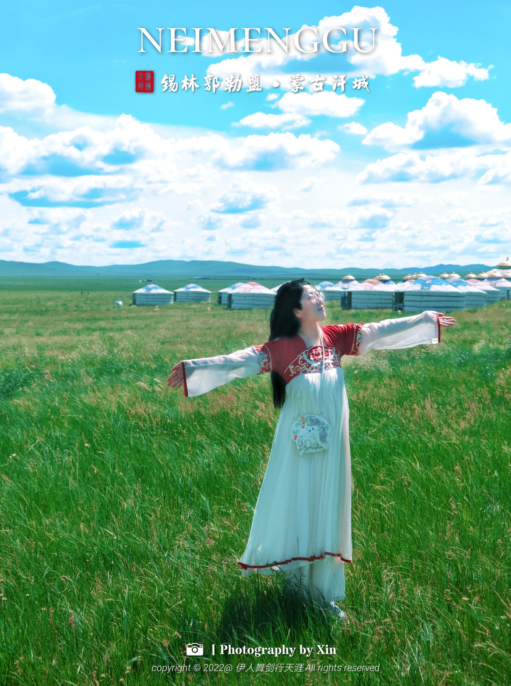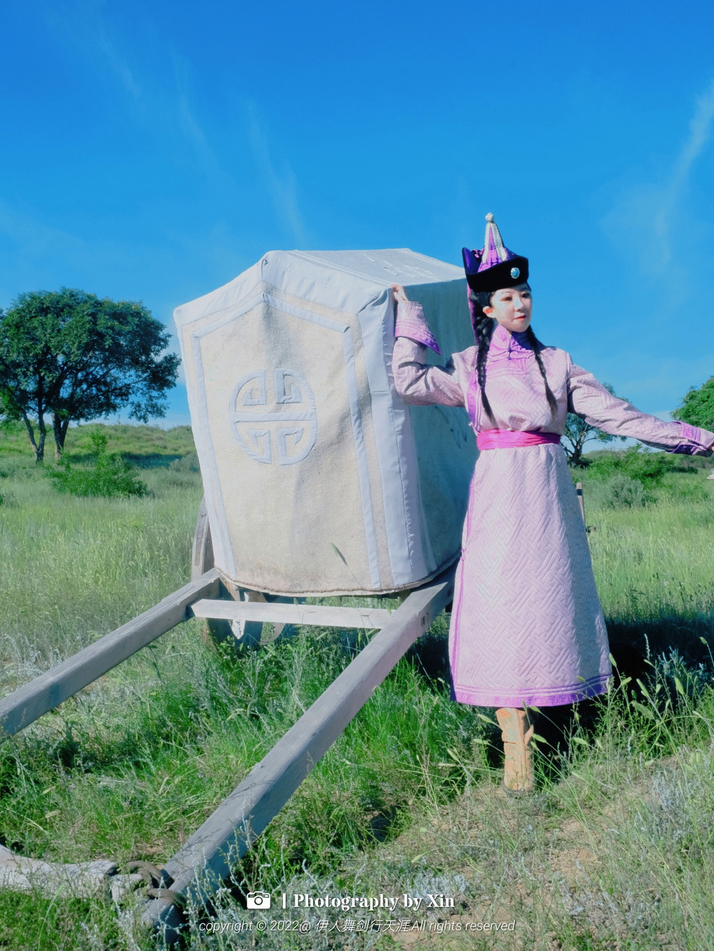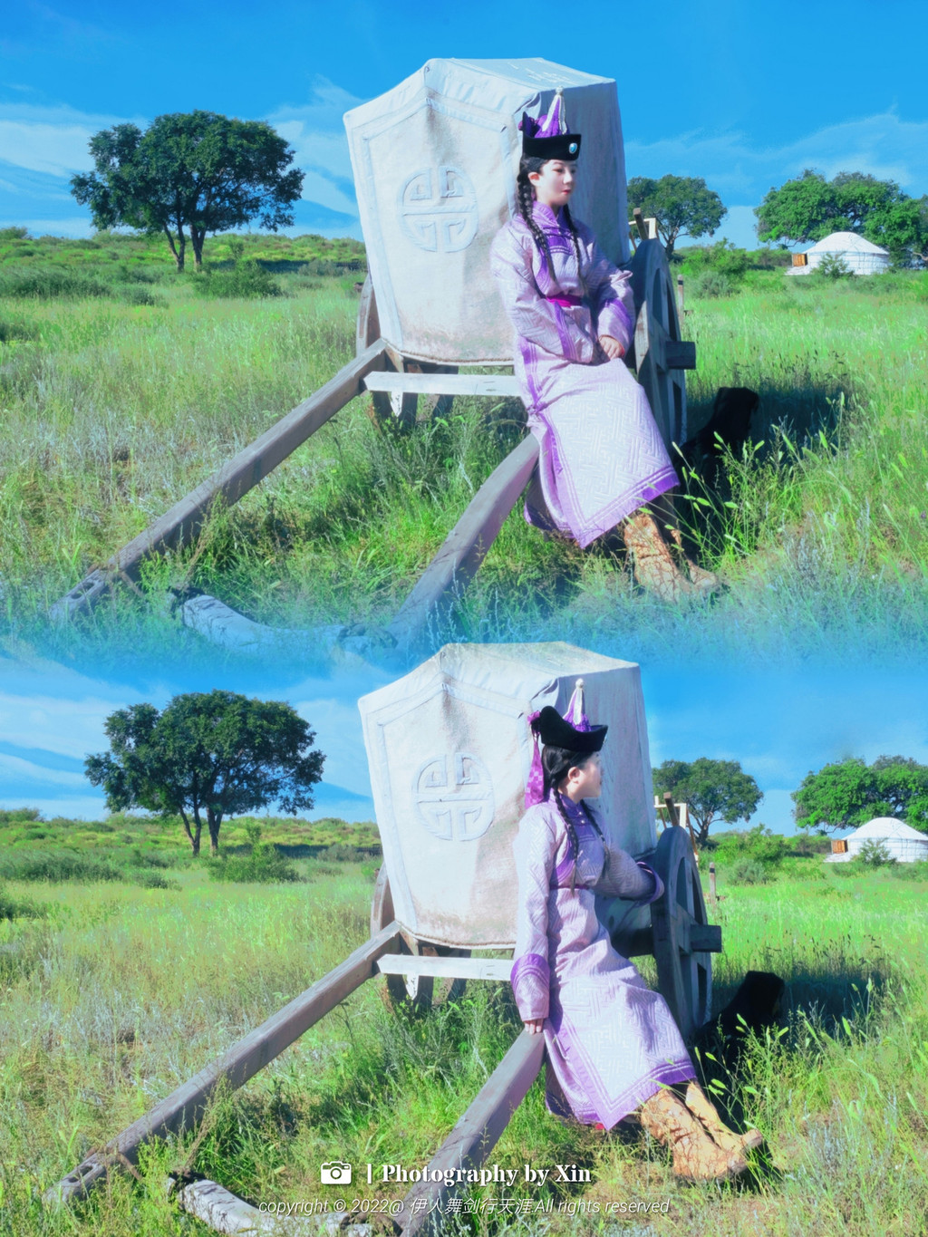 在这里我们换装变身后,奔走在这片大草原上,蒙古包前,牛车边,在羊圈里。在这里我们可以完全放空自己,听风声与自然对话,悦马蹄声敲醒大地,看日出日落享受幽静的夜空。